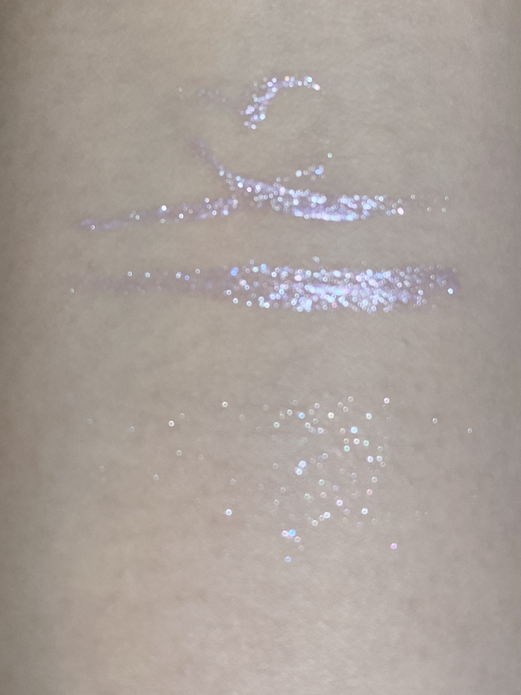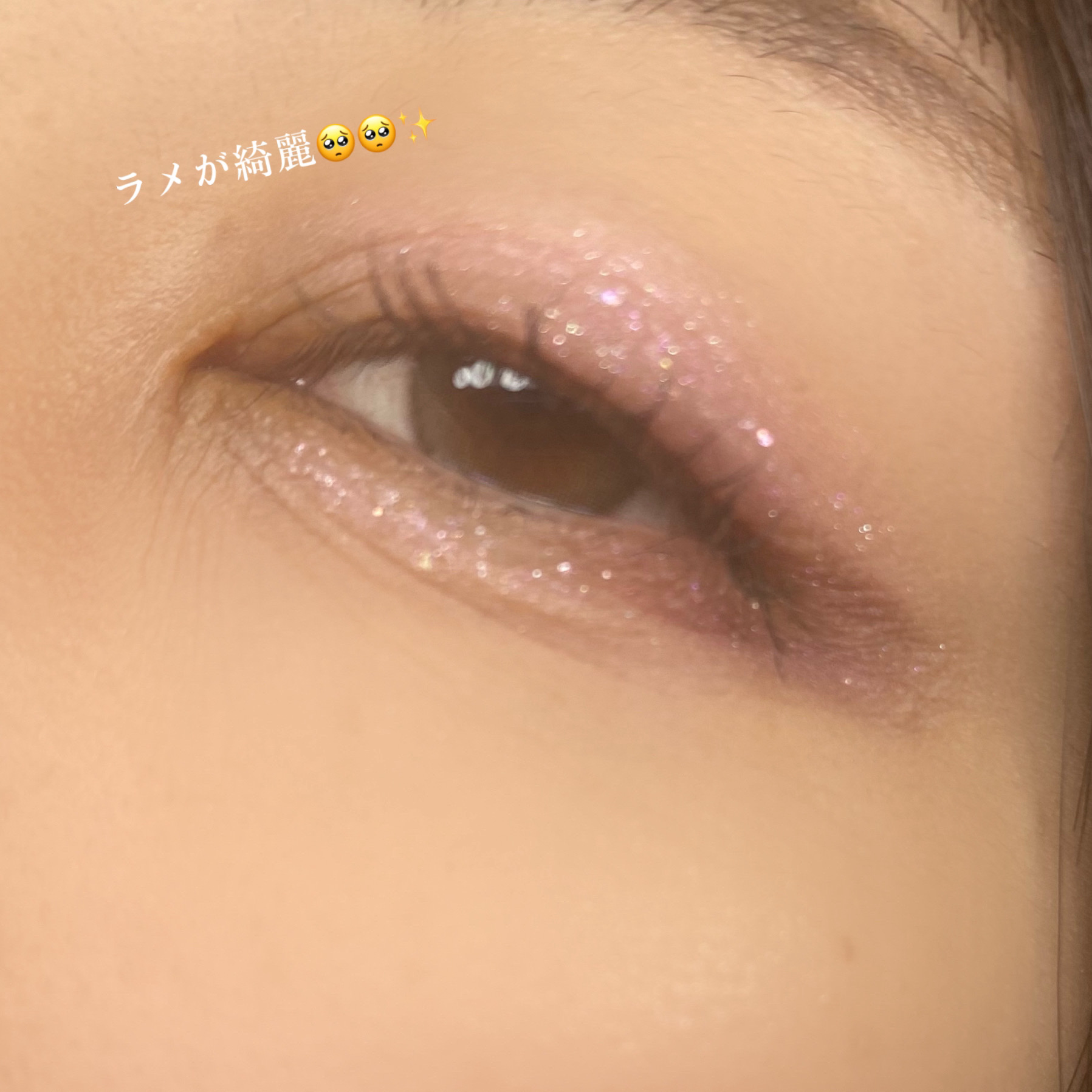 細筆でラメが乗せやすい。 濡れ感のあるテクスチャーでうるっとした印象に🥺 ラメが長時間キープで長くウルウル感が楽しめる。 パール感強めだからキラキラ感がすっごく可愛い🌟 涙袋にはもちろん、チークとかハイライトとしてもおすすめ! 軽く伸ばすと肌に馴染んでこなれ感が出る👍 濡れ感がほどよくてメイクがぐっと華やかに😌💓 盛りたい日は絶対ラメとパールは欠かせない〜!