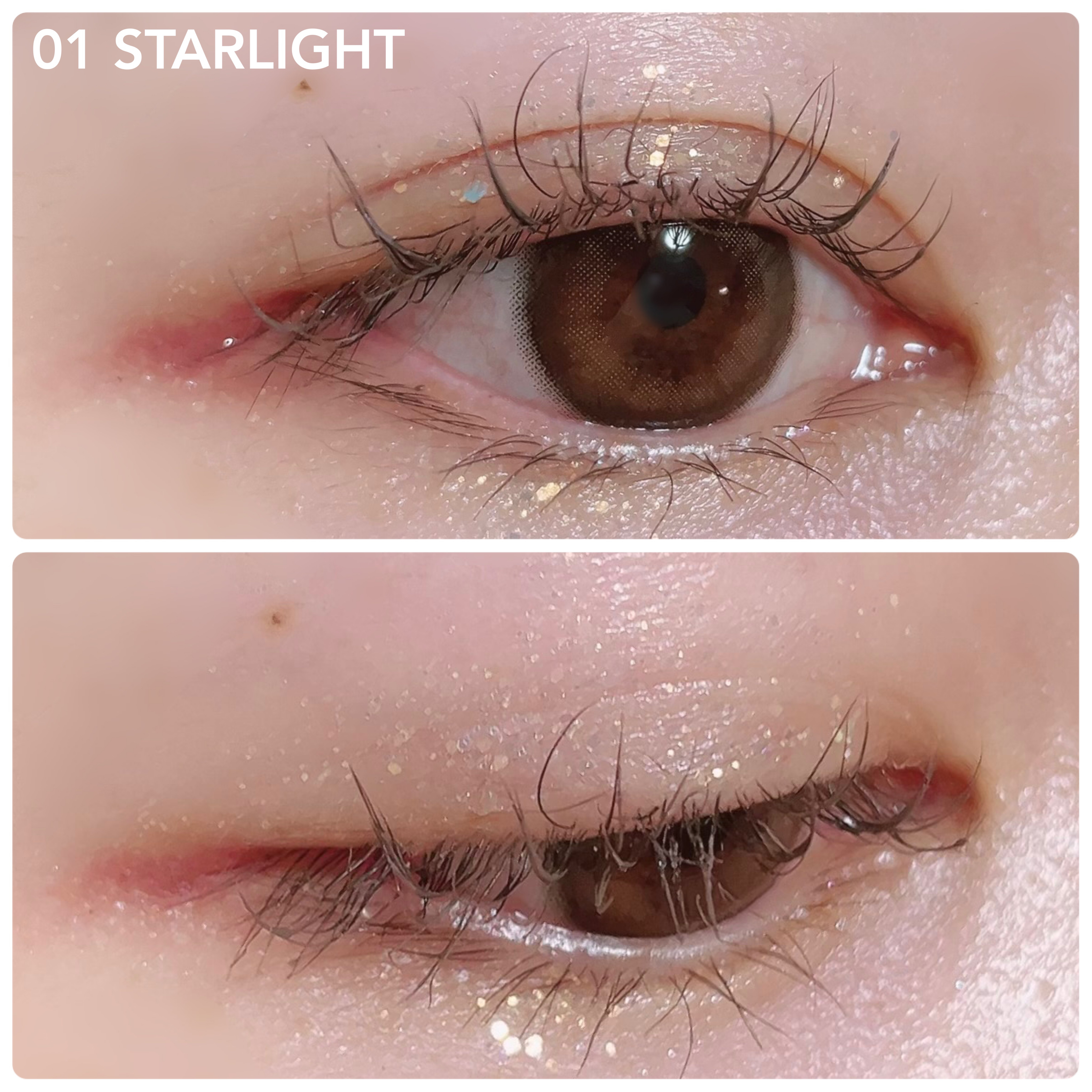パウダーは、しっとりと滑らかで、一度目元に乗せると、大きなグリッターラメもピタッとフィットします。 しっかりとくっつくので、擦ってもラメが飛んだりしませんでした😳 発色は薄めで透明感があります✨ どちらかというと、ラメで発色させる感じがしました! ちなみに今回私は、ブラシを使わずに指で塗ったんだけど、綺麗に塗れました🥰 ラメラメ好きな方にオススメです✨
