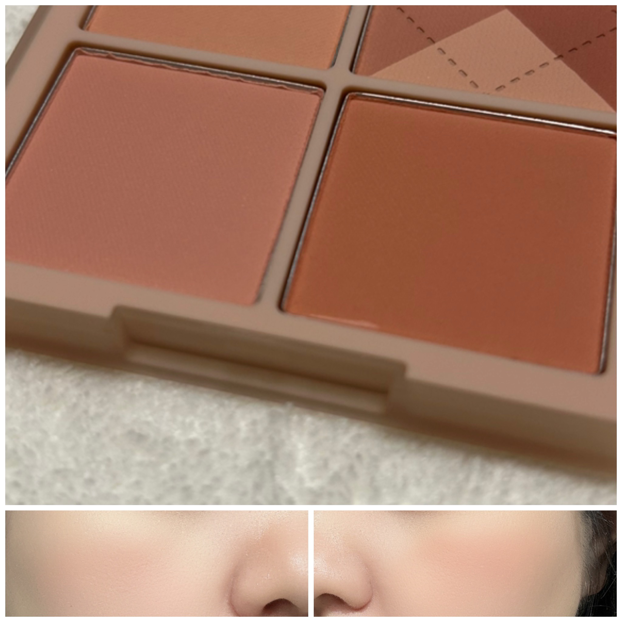 単色使いはもちろん、4色を組み合わせると何通りもの使い方ができます。(数弱なので計算はできません笑) まさに万能チーク(写真をご参考にどうぞ) チーク自体は発色よきでもちもいいです。