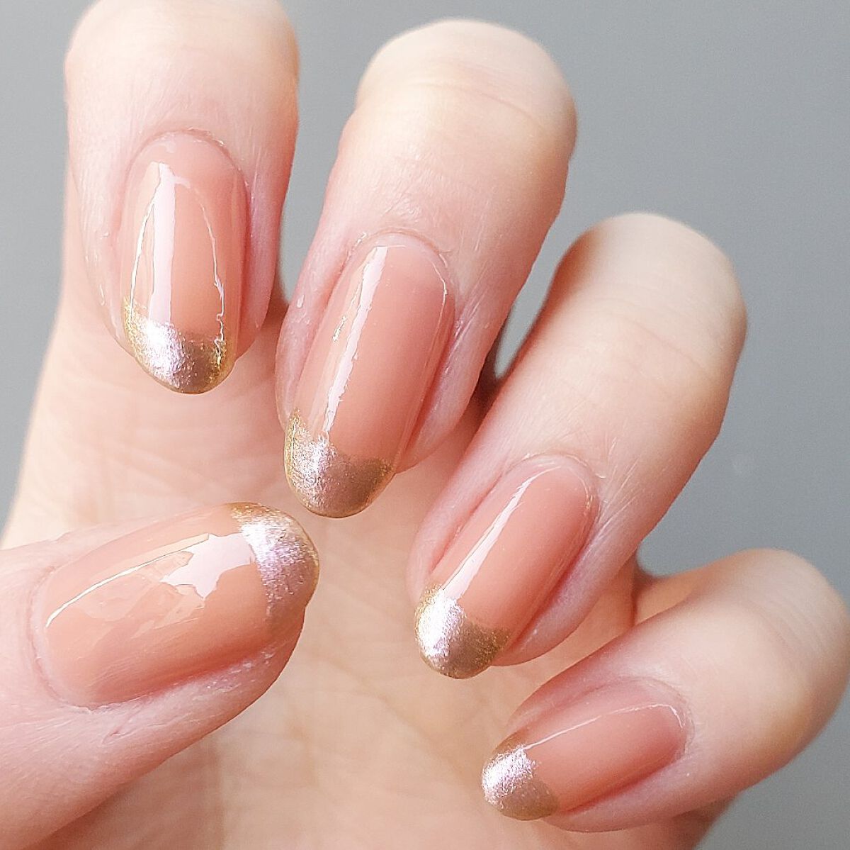 大好きなドクターエルシアのポリッシュは、どれもシアー感のある仕上がりで大好きなんです! カラークラブのオーロラリリーをミラーフレンチっぽく塗って…完成♡︎ʾʾ たった2色で、この上品な仕上がり!! オフィスにも向いてるかと🫶🏻