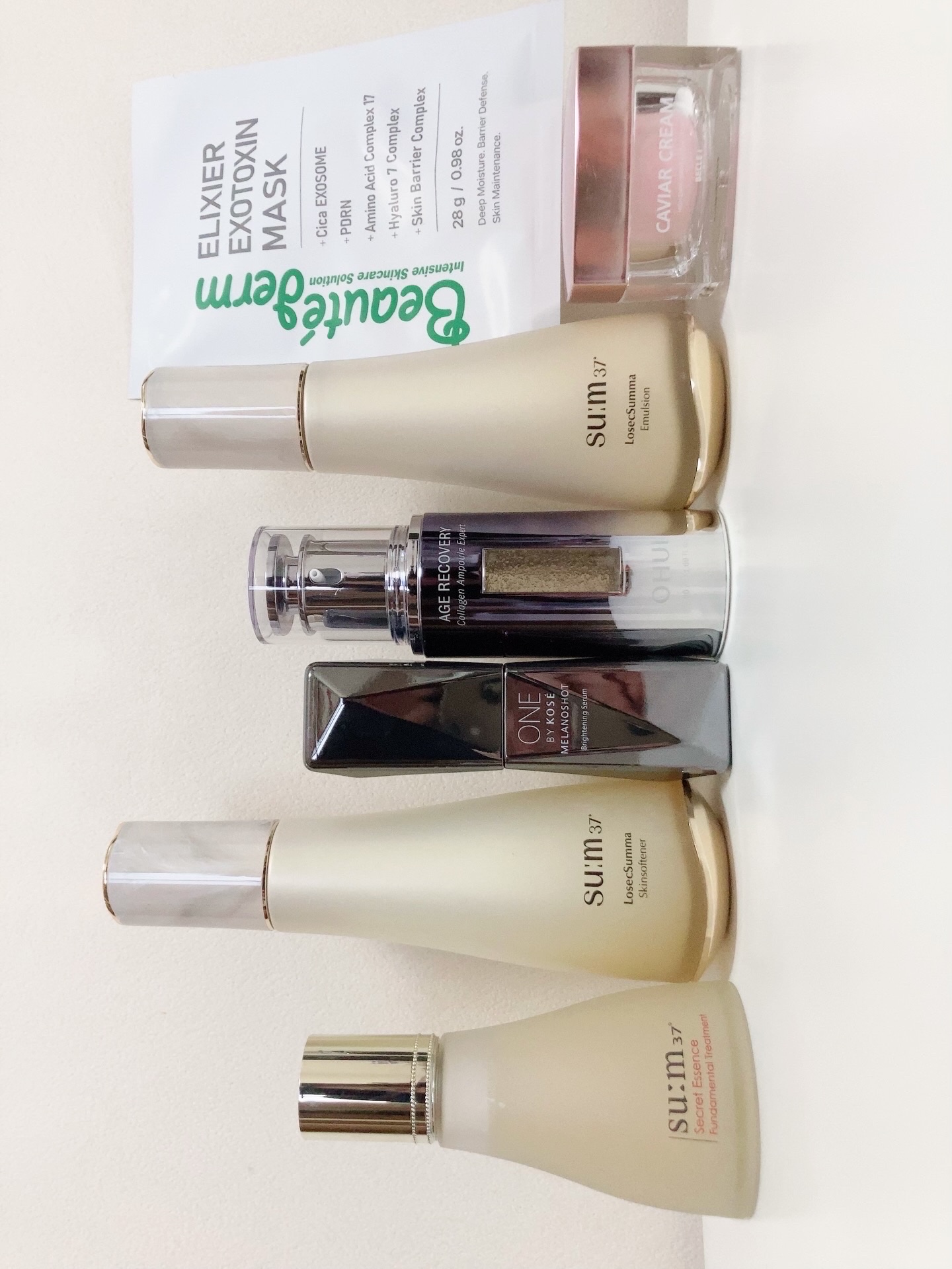 ・#アラフォースキンケアとある日の夜のスキンケア🧴🌙左から👉①導入@sum37_japan@lgbeauty_jpリピート🔁です!スム37のシークレットエッセンス🧴アラフォーの乾いた肌にグングン入り込んで肌を柔らかーくしてくれるのでお気に入り。②化粧水スムの最高峰ライン、ロシクスマ(ロシックスンマ)のソフナー。高保湿で、香りがめちゃくちゃ好き♡③薬用美白美容液@onebykose信頼して使ってます!メラノショット✨来年新発売の商品も気になる🫣④通称;戦闘力53万アンプル❤️🔥@ohui_jp.official@lgbeauty_jpOHUIのコラーゲンアンプル!購入前に2週間ほど毎日サンプル使って、肌実感しているので現品購入♪お肌モチモチ、弾力アップと肌表面のツルツル感が病みつきに♪⑤乳液同じくスムのロシクスマの乳液です!毎回同じこと言ってますが、クリーム並みの保湿力で超リッチ✨超乾燥肌にもってこいの美容乳液です!⑥保湿クリーム@bellej_jp_official@bellej_official使い始めて3ヶ月目!本物のキャビアを使っているという✨キャビアクリーム。超高濃度のキャビアが配合されてるらしい、お肌がツヤツヤに🥚✨⑥鎮静マスク@beautederm_japan@beautederm_officialこのブランドのアンプルがめちゃくちゃ良かったので、購入してみたマスク!水分がグングン肌に入っていく感じ!乾燥で肌が敏感になった時用に使いたい!薄肌超乾燥年齢肌の私には発酵スキンケアがとても合っている感じがします⭐️どーでも良いけど、スムのロシクスマ?ロシックスンマ?正しくは何て読むんだろう🙄寝る🛏️直前に、アイクリームなどのアイケアをするので、また別途紹介したいと思います♪以上、スキンケアの記録でした📓#スキンケア記録#韓国コスメ#40代美容#購入品#No案件
