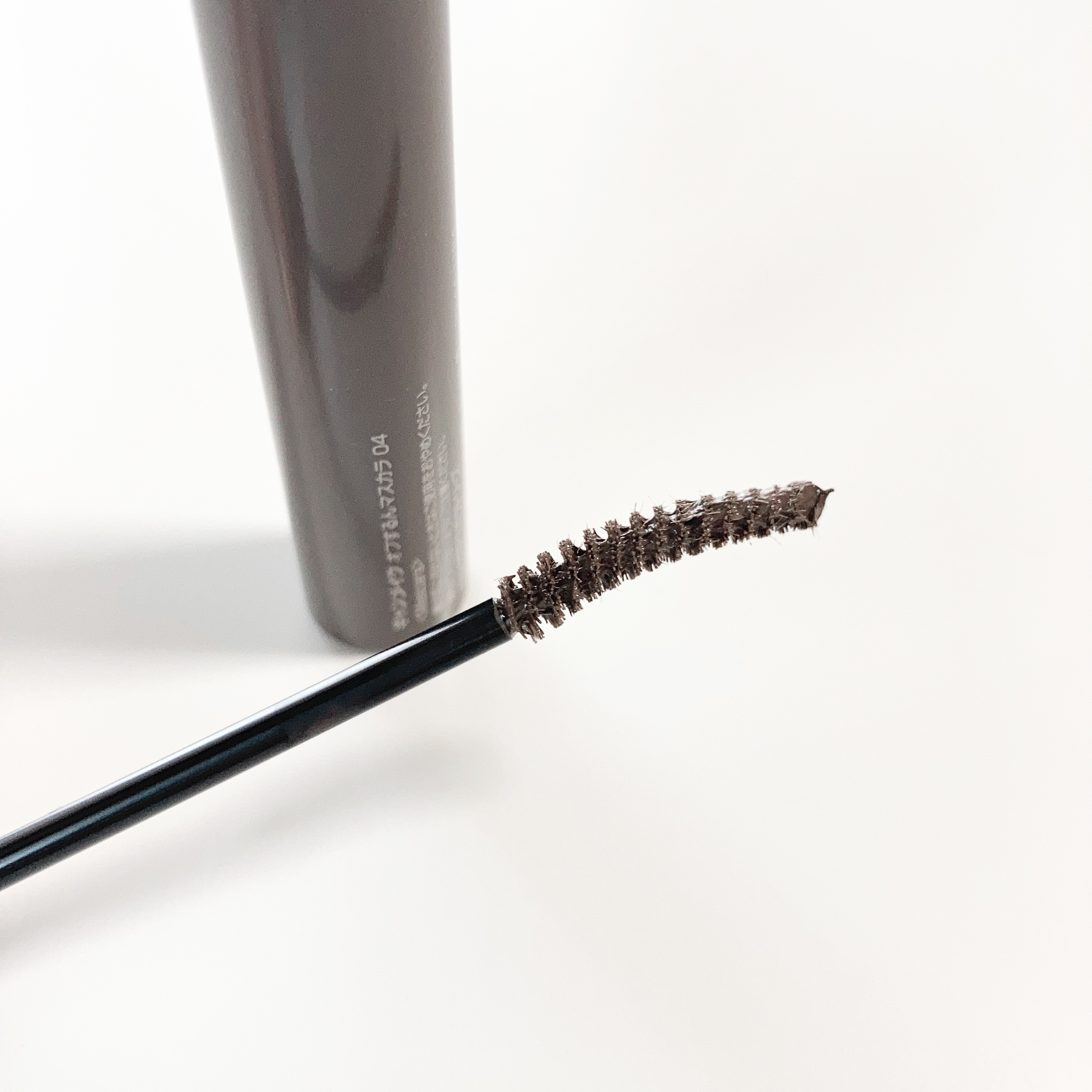 キャットアッシュと言うネーミングにぴったりなグレー猫の被毛にミルクブラウンをプラスしたようなカラー🐈⬛💓まつ毛の存在感を残しつつ、程よく抜け感のある仕上がり💯 緩くも固くもないちょうどいいテクスチャ。粘度は低めに感じました。透明の繊維が入っていて、重ね付けしても軽く、ダマになりづらい!ナチュラルに長さとボリュームが出ます。ビューラーなしでも、若干カーリング効果あり◎ 先端にいくにつれ細くなっていて、ゆるいカーブのついた形状。上はもちろん、下まつげや細部も塗りやすい🙌🏻液がまぶたに付いたり、事故も少なく感じました😇 長時間付けていてもポロポロ崩れたり、まつ毛が極端に下がったりは無し💯 濡れた手OKのオイルクレンジングを軽く馴染ませて簡単にオフ出来ました😆マスカラ単体なら泡洗顔だけで落とせそうな勢い🫥