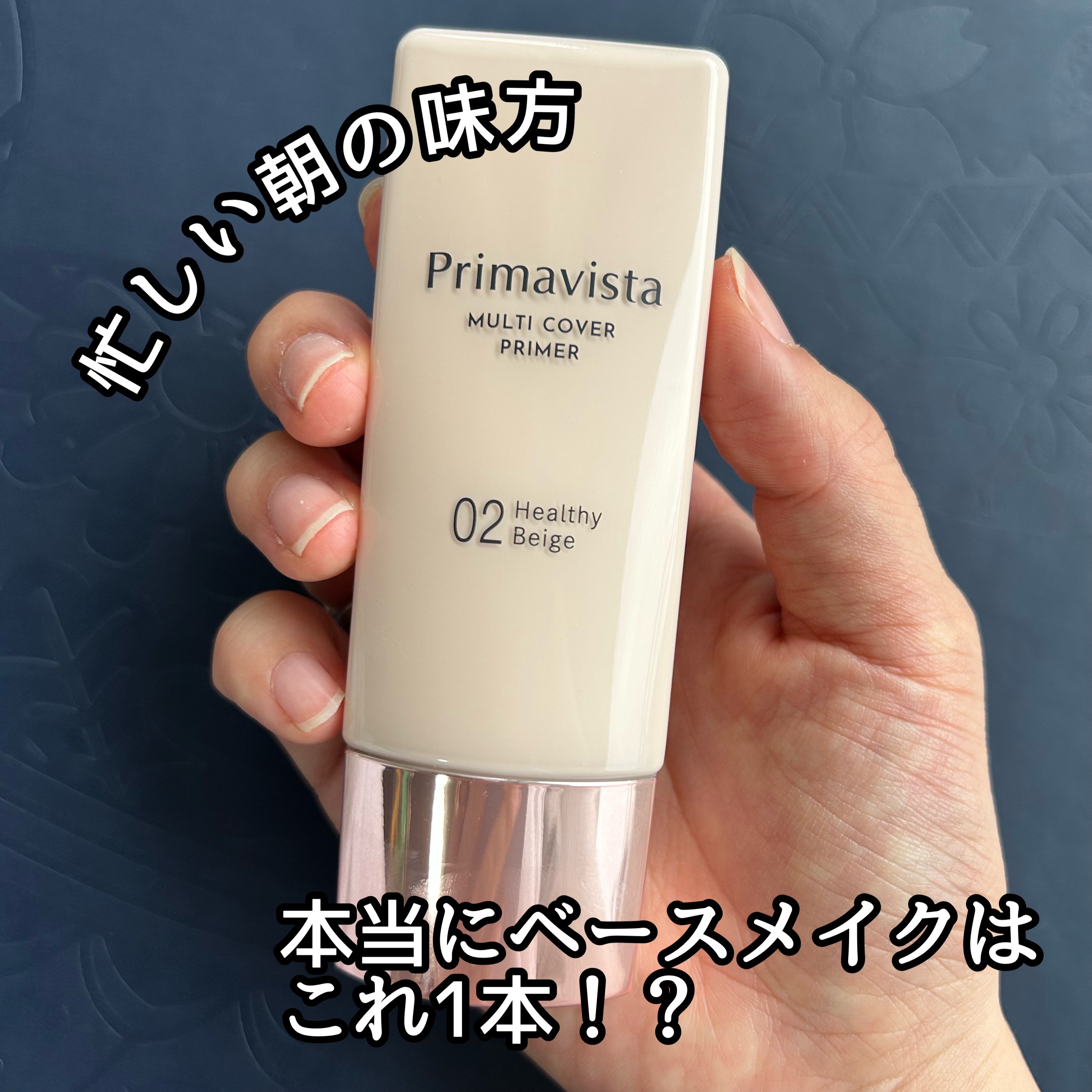 ・1本5役で最強時短コスメ! ・高カバー力だけど、厚塗り感なく、軽いつけ心地! ・プリマヴィスタ新設計「パウダリーチェンジ処方」によって、テカリ、ベタつきが気になりにくい綺麗なハーフマットな仕上がり! ・マスクへの付きにくさ ★★★★☆ ( ウォータープルーフではないので、汗や水、蒸れには少し弱いかも△ ) ・保湿成分(アスナロ枝エキス)配合&おしろい要らずで乾燥しにくい! ・02ヘルシーベージュはややオレンジみが強めなので、青クマ、血色感不足、血管など、青み系肌悩みのカバーに優れてる!
