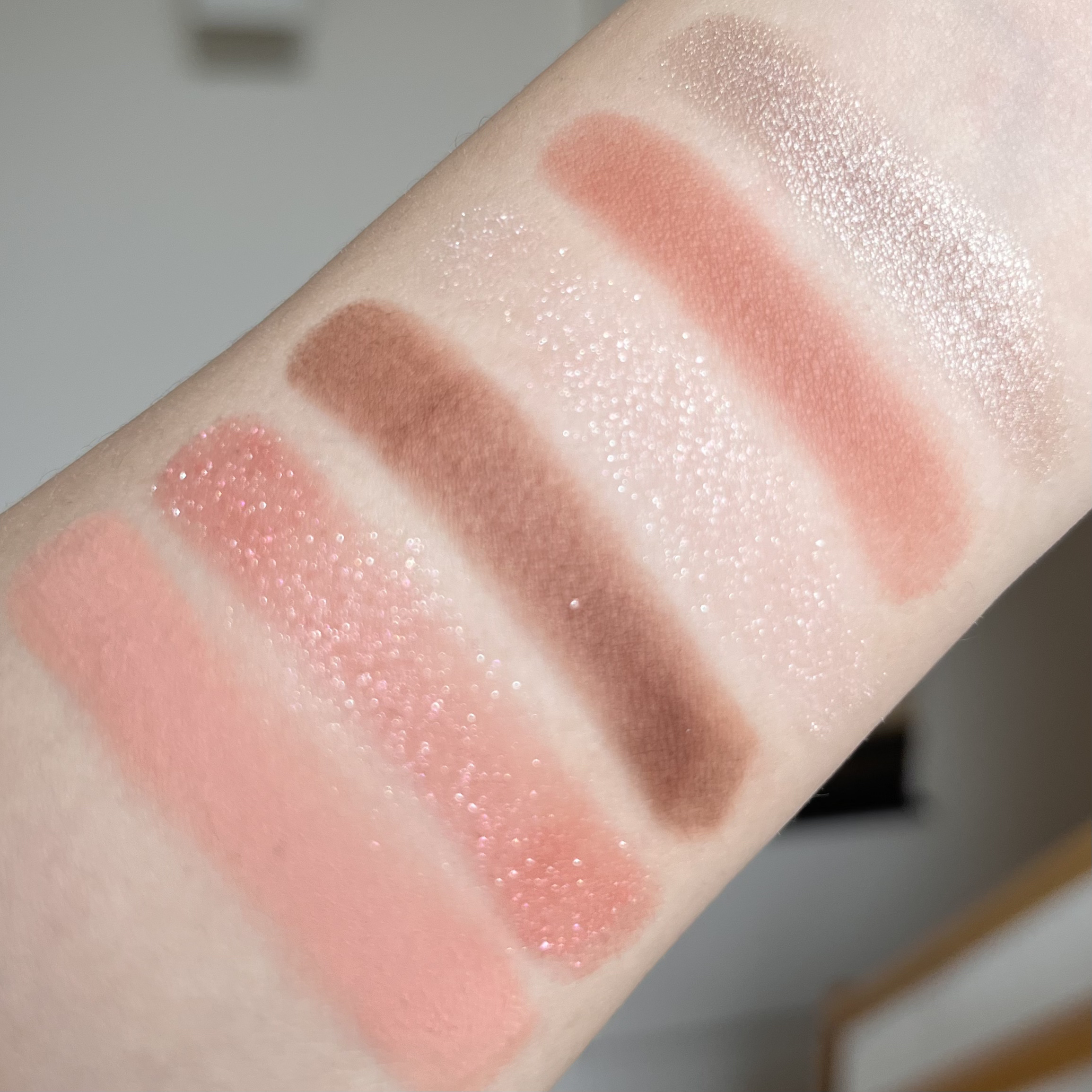 見た目は少し濃いカラーに見えますが肌にのせると思った以上に肌なじみが良く普段使いしやすいパレットです。 個人的に、真ん中のピンクカラーのラメ感がとても好みでした💓 メイクの仕上げにプラスするとキラッと輝く&ピンクメイクを楽しめるのでお気に入り🥰 バレンタインメイクとしてはもちろん、これから春先にかけても使用しやすいと感じたため、いろんな組み合わせを楽しみたいと思います✨