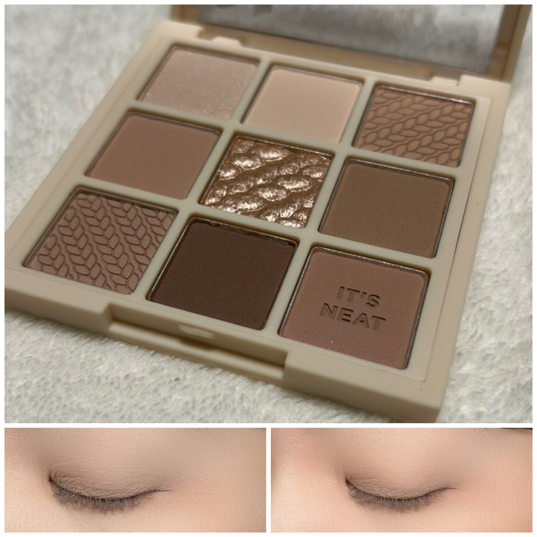 ✂ーーーーーーーーーーーーーーーーーーーー✦商品名:【HOLIKAHOLIKA】マイフェイブムードアイパレット9カラー(05NEATKNIT)✦用途:お仕事用、落ち着いたメイクの時✧いいとこ・微妙なとこ✧LIPS購入品。ひっさしぶりの会社のリアル総会で、そこそこノーマルに小綺麗にせにゃならん、と言う窮地に陥ったテレワークの民である私。コロナを経てノーマルなブラウンやらベージュやらマット系のアイシャドウを断捨離してしまって、やっべ!ってなった結果、よーつべのコスメ紹介でおすすめされて辿り着いたお品。急いでたので正直殆ど調べずに買ったんだけど、結果から言えばばちくその救世主になってくれた。頭の中をからっぽにして、薄い色から濃い色まで使ってもよし、中間色だけを適当にぺしぺし上下瞼に伸ばしてもよし、なんかそれだけでちゃんとメイクしましたね!でも派手じゃないね!清潔感!的な出来になる。何だこの不思議なおこなの質感、どうなってるんだ、乗せるだけでスゥ…って瞼に溶けるように馴染んで、物凄く瞼綺麗な人になるぞ!これが雲質感とやつなのかとひたすらに感動。更に言えば、眉毛もかける、なちゅらり~な涙袋もかける、やわらかめアイラインならひける、と、ぎらっぎらなお顔ではない優しいお顔を作る為のものが全てそろっている。しかもお色が柔らかい。多分儚い顔も作れる。これだけで頭空っぽにして顔面に色をつけられる、色相のズレを気にしなくていい!!便利!!!褒める口が止まらぬくらい良かった。✦これからどうする?:使う。お粉の質感に感動したので、是非他の色も欲しい…。✂ーーーーーーーーーーーーーーーーーーーー