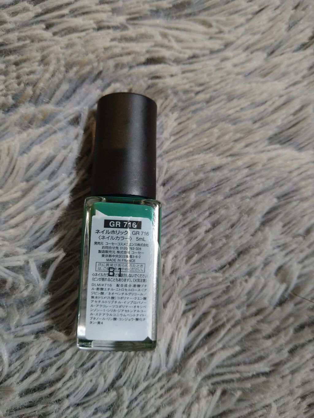 購入品ネイルホリックのGR716を購入してみました。夏らしいグリーンが欲しかった。結果は大当たり!深みのある青緑で、ターコイズの深い色のタイプに近い色。良き青緑。GR716は、オススメカラーです!トップコートは、ネイルホリックトップコートです...