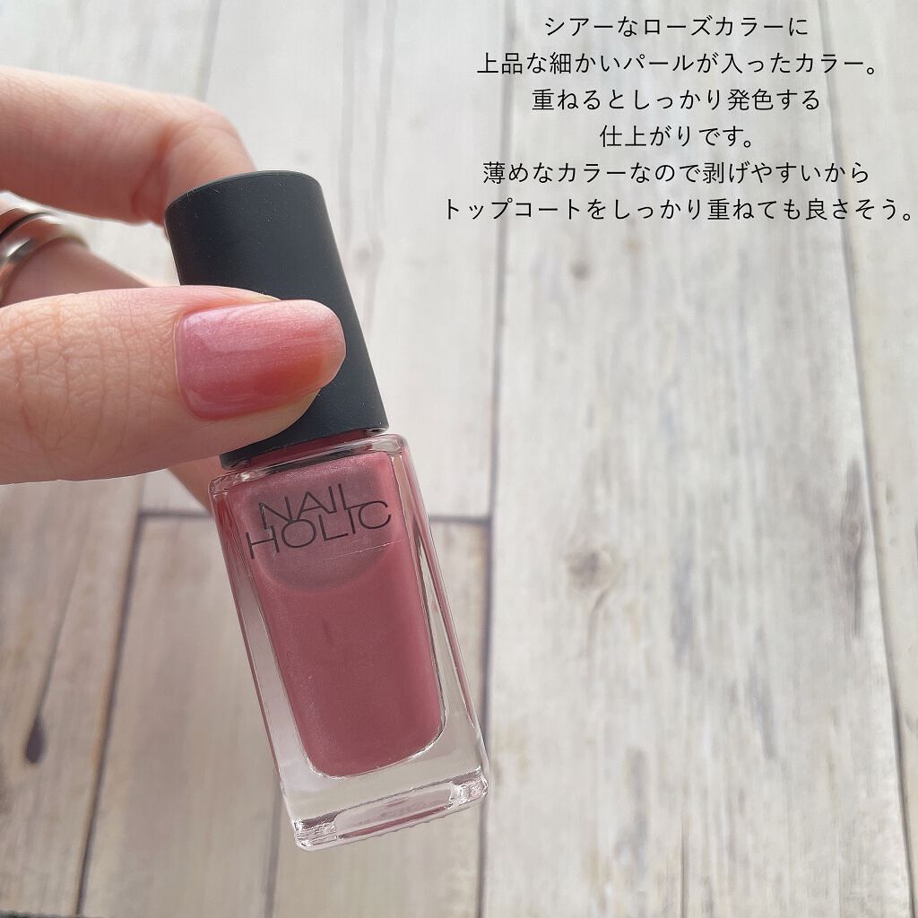 ネイルホリックRO603浴衣を着るのでシンプルなネイルにしたくてこちらを使用。パールが綺麗な薄いピンクです。ワンカラーだと気にくわなかったのでグラデーションにしてみたら不思議とすごく気に入りました!塗り方ひとつでずいぶん印象が変わるものですね...