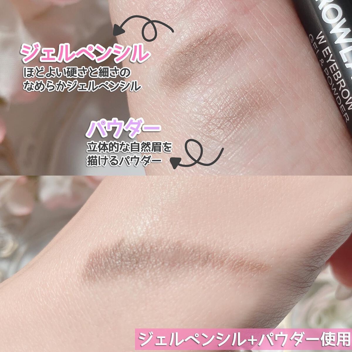 グレーやブラウンより地毛に近い色。髪が茶色くてもナチュラルに仕上がります。カラコンやアッシュ系、黒髪に◎ 自眉に近いからメイクがばれたくないスクールメイクにも良さそう。 男女関係なく使用できる馴染みカラーなのでジェンダーレスコスメとしても俄然使えます! 抜け感のあるおしゃれ印象にしてくれるカラーですよ◎ もっとナチュラルに自眉をいかしたいって方はパウダーだけでも良いかと思います! アイライナーとして下側の目の際にも使ってみたらナチュラルな発色できつくならなくて良かったよ◎ ほどよい硬さと細さのなめらか芯は、力を入れずに描けてしっかり密着! 立体的な自然眉を描ける微粒子パウダーです。 24時間耐久*1+摩擦耐久*2テストクリアをしているそうで、描いた時の仕上がり感を長時間キープ!このシリーズ使ってますが眉が消えることなく一日中過ごせています!