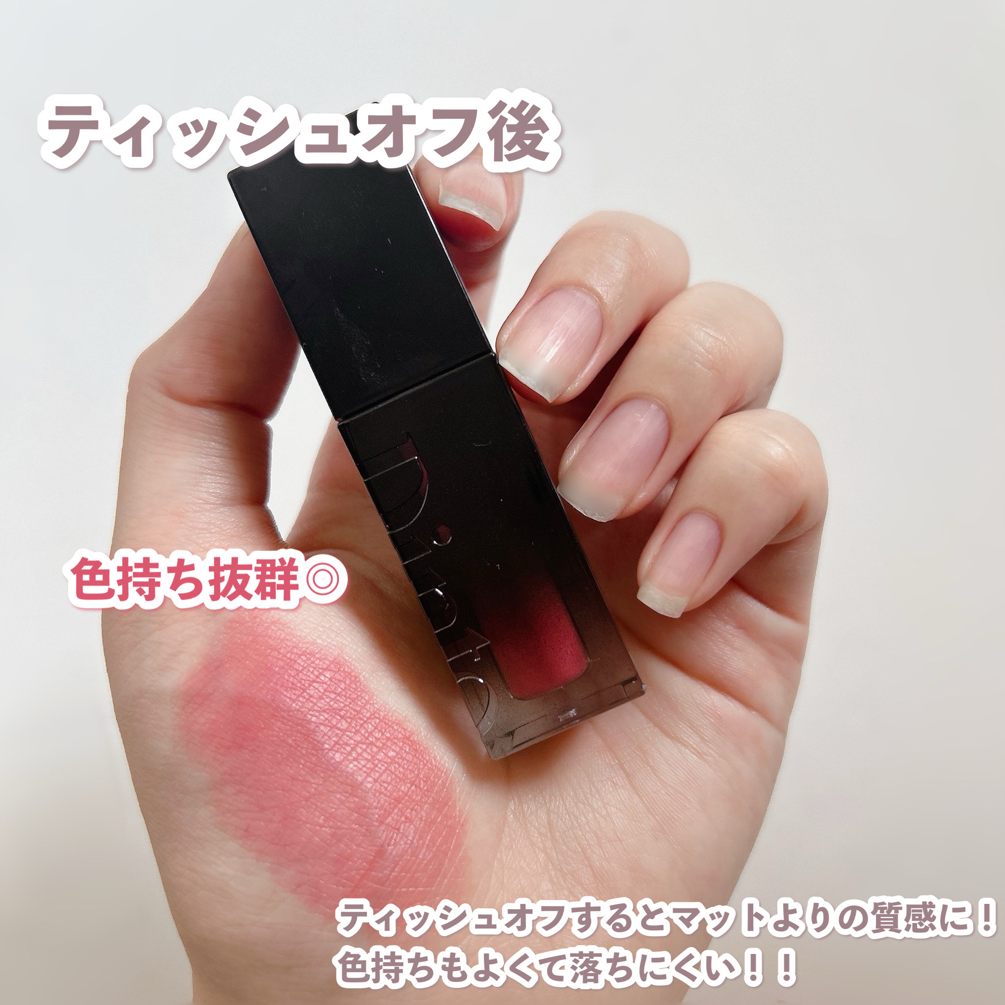 べたつきもなくて潤いたっぷりなティント💄✨発色も色持ちも今まで使ったティントの中で1番良い🤭💕飲み物飲んでも落ちないから長時間のお出かけにもぴったりだし潤いがすごいから乾燥にも強い!艶々の唇になるからテンションあがる❗️...