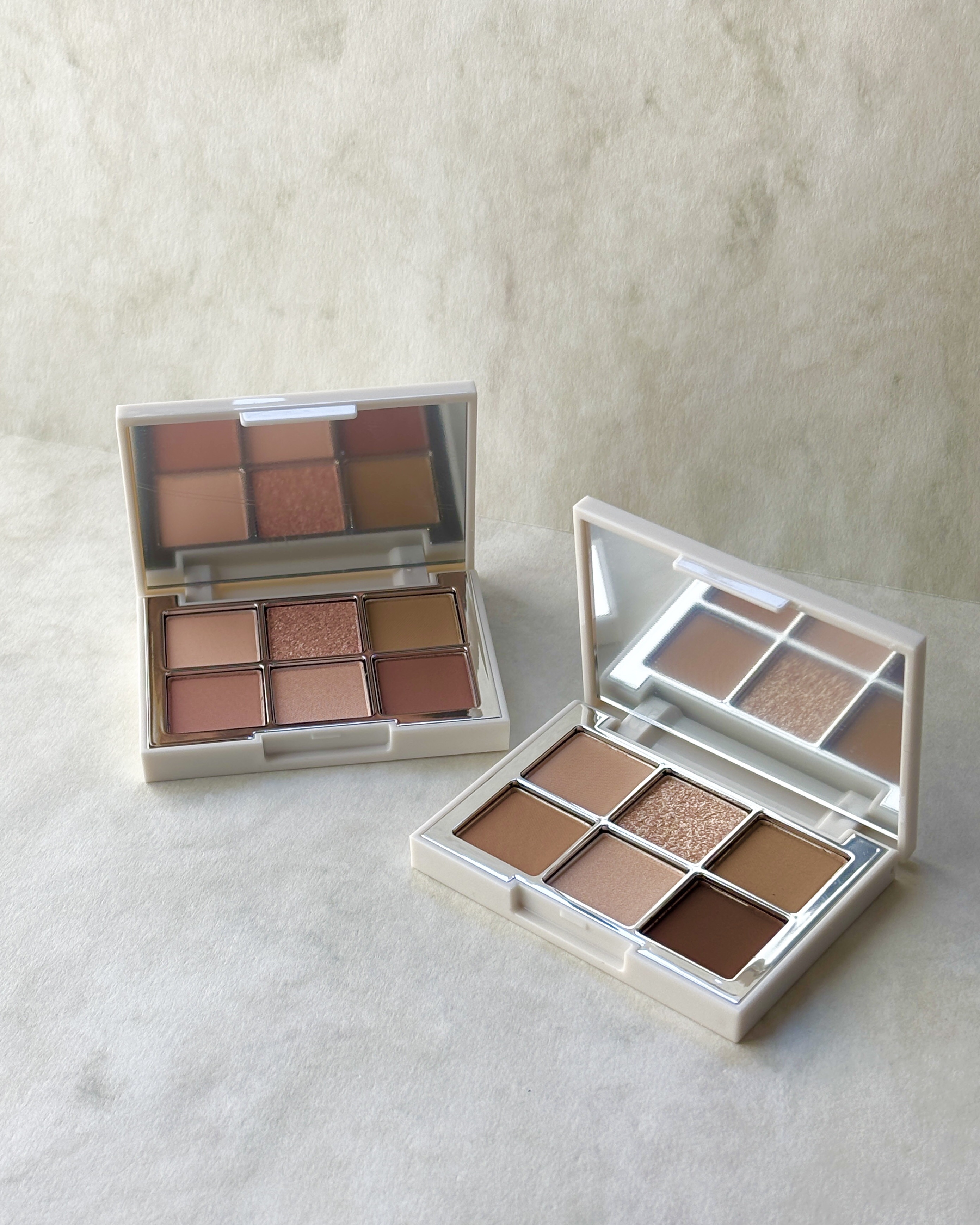 捨て色なしの6色パレット 淡く透け感のある発色で使いやすい🫶🏻💭 粉質も良く、マットカラーもパサつかない 持ち運びにも便利なコンパクトサイズ✨ モーブとベージュの間の落ち着いたミュートカラー ほんのり青みも感じるけど寄りすぎない絶妙な色 淡く甘すぎない大人ピンクパレット✨ グレーとベージュのふんわりとしたソフトトーン これぞ王道ブラウン!普段使いしやすいカラー 2色ともラメが綺麗なんだけど、こちらの方が さらにキラキラが増してる気がする👀 アイシャドウだけではなく、チーク、シェーディング ハイライトとマルチに使えるパレットになっているよ✨