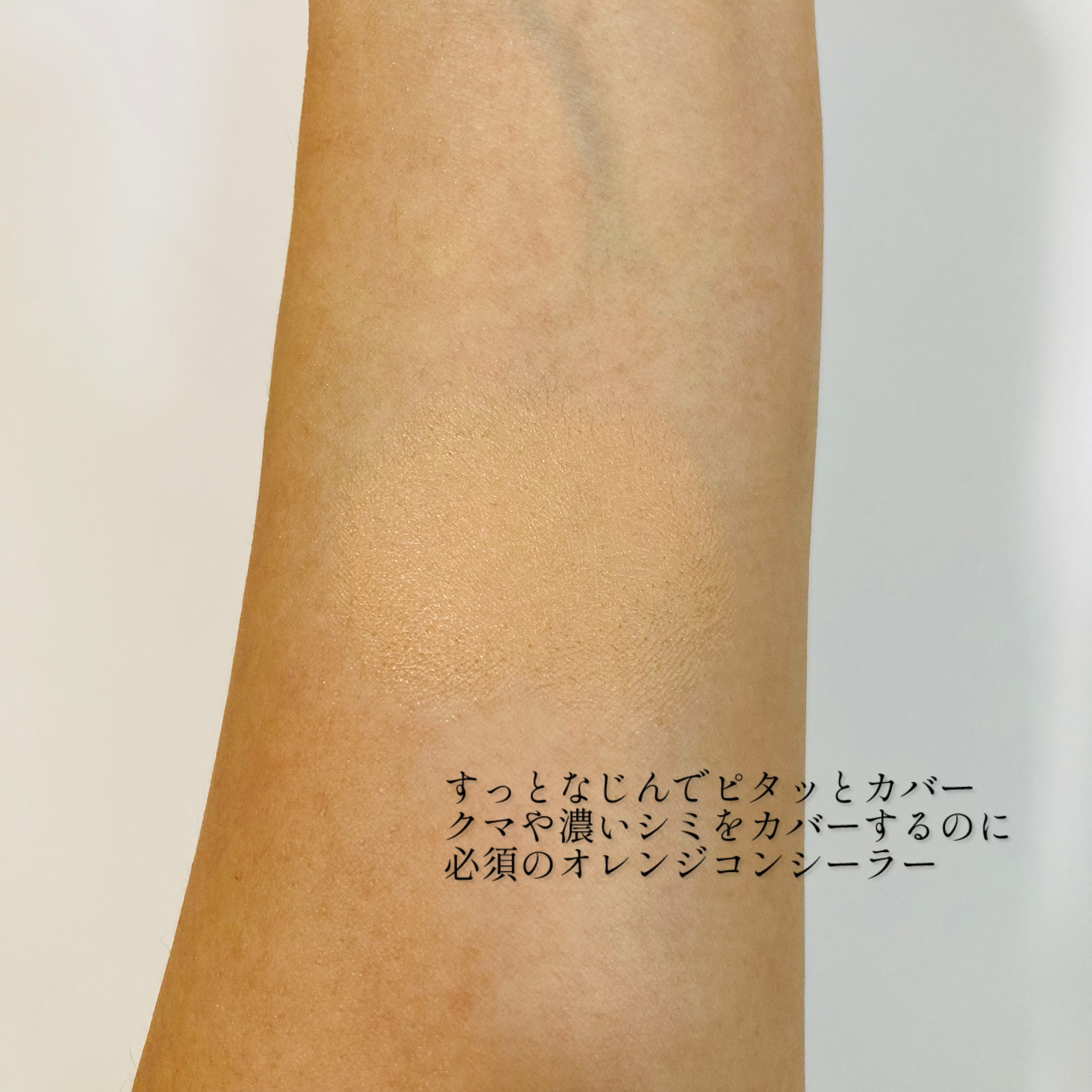 オレンジコンシーラーは目元にメインに使うので、カバー力と馴染みの良さが大事🙌 カネボウは、するんと馴染むのにピタッとカバー✨️ 目周りに使用しても、美容液成分たっぷりで乾燥しない!! シワにならない!! よれない!! カバーしながら、肌になりきる。 つけたての美しさとうるおいが続く。