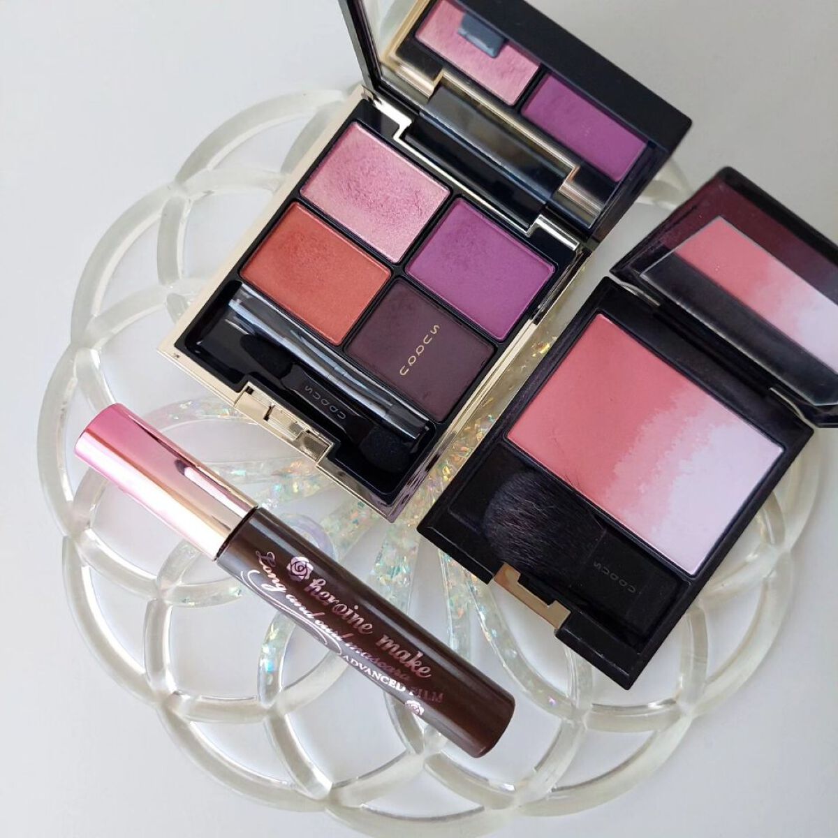 アイシーカラーがとってもかわいいパレット🍧🧊✨ 左下のコーラルをベースに右上を重ねて、左上は目頭と黒目上に入れてみました💁🏻♀ 右下はアイラインに🥰 チークも当時のコレクション、澪涼。透明感爆発のラベンダーカラー✨✨ マスカラはブラウンにしました🙋🏻♀