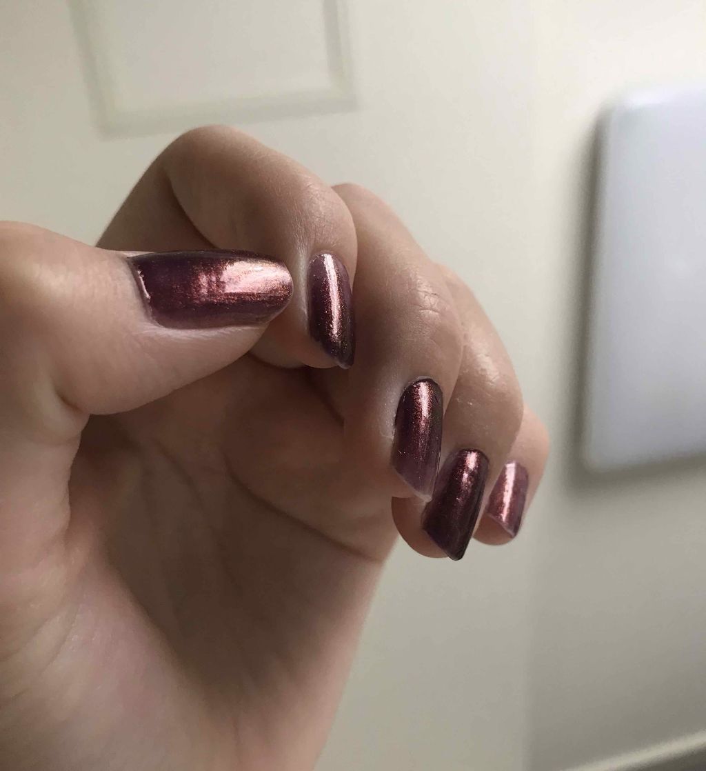すごく綺麗な色!!秋、ハロウィンにピッタリです。赤紫の地に、赤やオレンジに輝くラメ。ネイルホリックRD409ほかの色のネイルや、失敗したなーと思う色のネイルに重ねても、かなり良かったです!(ほかの色:paネイルカラーAA158、失敗した:BL955→青みのあるメタリックな紫で、重ねるとちょうどいい紫になりますよ!)あ、単色でこの色は色気があります(๑˙❥˙๑)大人な色気〜♪ミステリアス(神秘的)ですよね(^^)なくなったらリピートするかもしれません#ネイル#爪#ネイルホリック#赤紫#ラメネイル#ラメ#シンプル#シンプル秋ネイル#秋ネイル#秋#ハロウィン#色気#ミステリアス#リピートコスメ#スウォッチ写真は、夕焼けの光が当たるもの、日が沈んだ後の光、室内光、朝の光で撮ってみました。