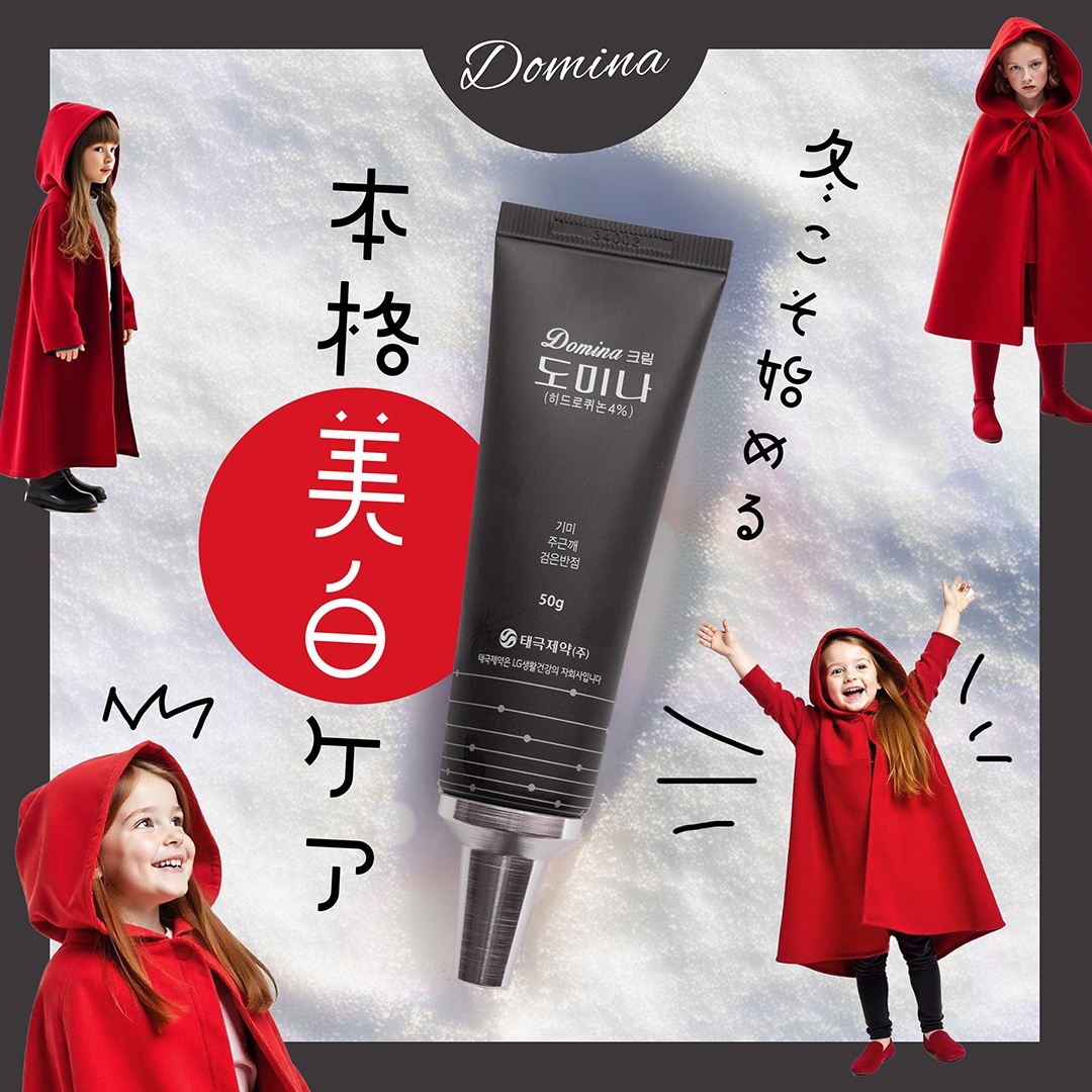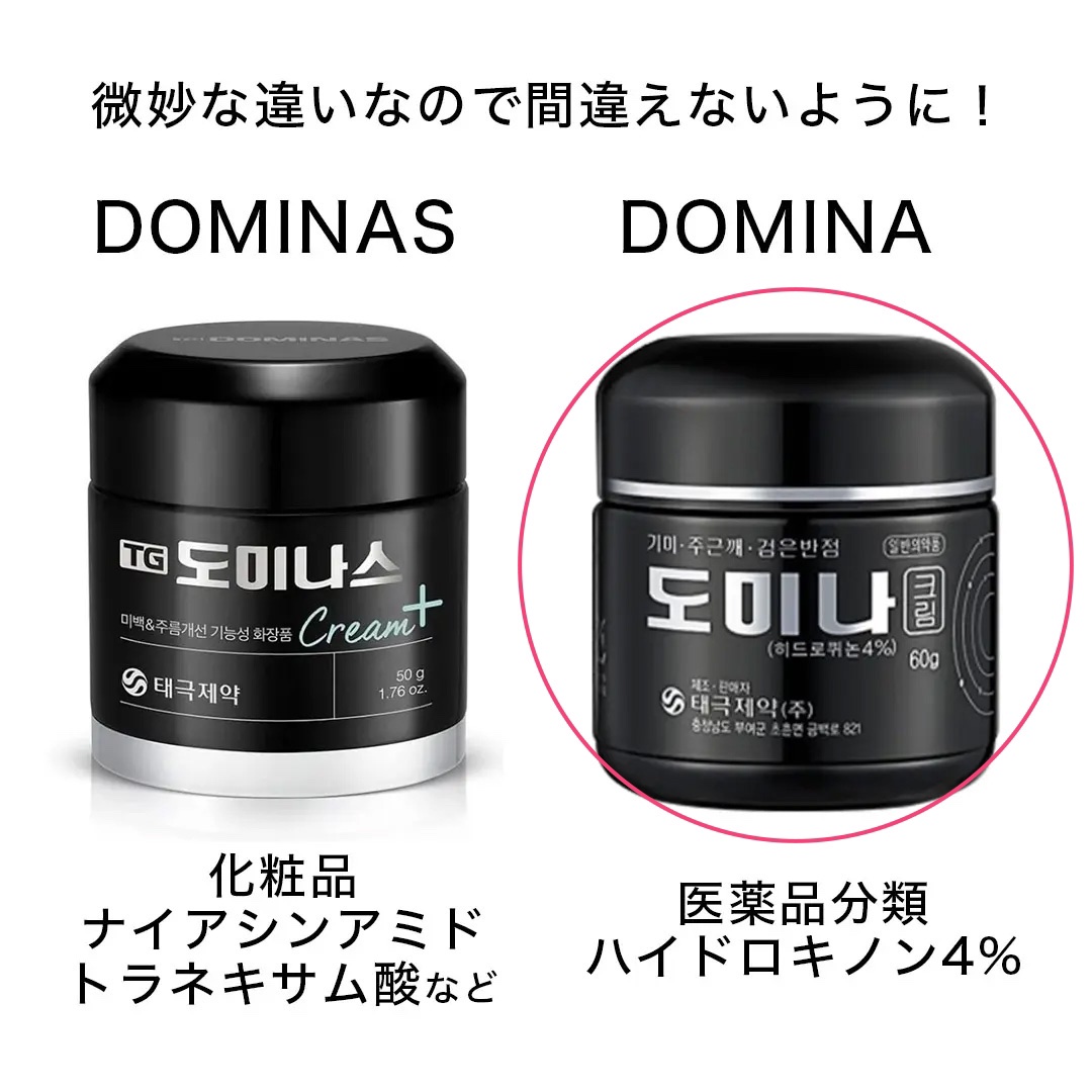 \肌の漂白剤!韓国の薬局で有名なシミ消し美白クリーム/TAIGUK(太極製薬)ドミナクリーム50g(チューブタイプ)5,999円→4,799円(Qoo10メガ割価格)秋冬といえば集中美白ケアに絶好の季節!以前、類似のドミナスを間違えて買っちゃってたんだけど、今回は本物のドミナクリームをお試し😊✨韓国の薬局で売られているシミの漂白剤と言われるハイドロキノンを4%も配合の別名「シミ消しクリーム」。ハイドロキノンは、メラニンの生成を抑制&還元する効果があり、シミ、肝斑、色素沈着などを薄くしてくれる成分として有名☝🏻ただ、日本では化粧品への配合は2%までしか厚労省に許可されていない成分で、それ以上の濃度は病院での処方が必要なんです・・・一般的には、漂白効果と副作用のバランスで推奨される濃度は約4%ほどと言われているので、このドミナクリームはまさにドンピシャ❤️テクスチャーは、柔らかくとっても肌馴染みの良いクリーム。気になる匂いとかも特にないからとっても使いやすい🥰ただし、ハイドロキノン系のアイテムは美白上級者向けだけあって、使い方には注意が必要。長期の使用は色素沈着や白斑の副作用が起こる場合があるので、3ヶ月使用後は3ヶ月のお休み期間が必要。紫外線を浴びると炎症を起こす場合があるので、日中の日焼け止めは必須です。私は基本、秋冬の集中美白ケアとして10月~2月ぐらいの時期3ヶ月間、夜だけ使うようにしてます。#domina#ドミナ#ドミナクリーム#韓国コスメ#クリーム#美白#ハイドロキノン#韓国スキンケア#スキンケア#シミ#肝斑#そばかす#色素沈着