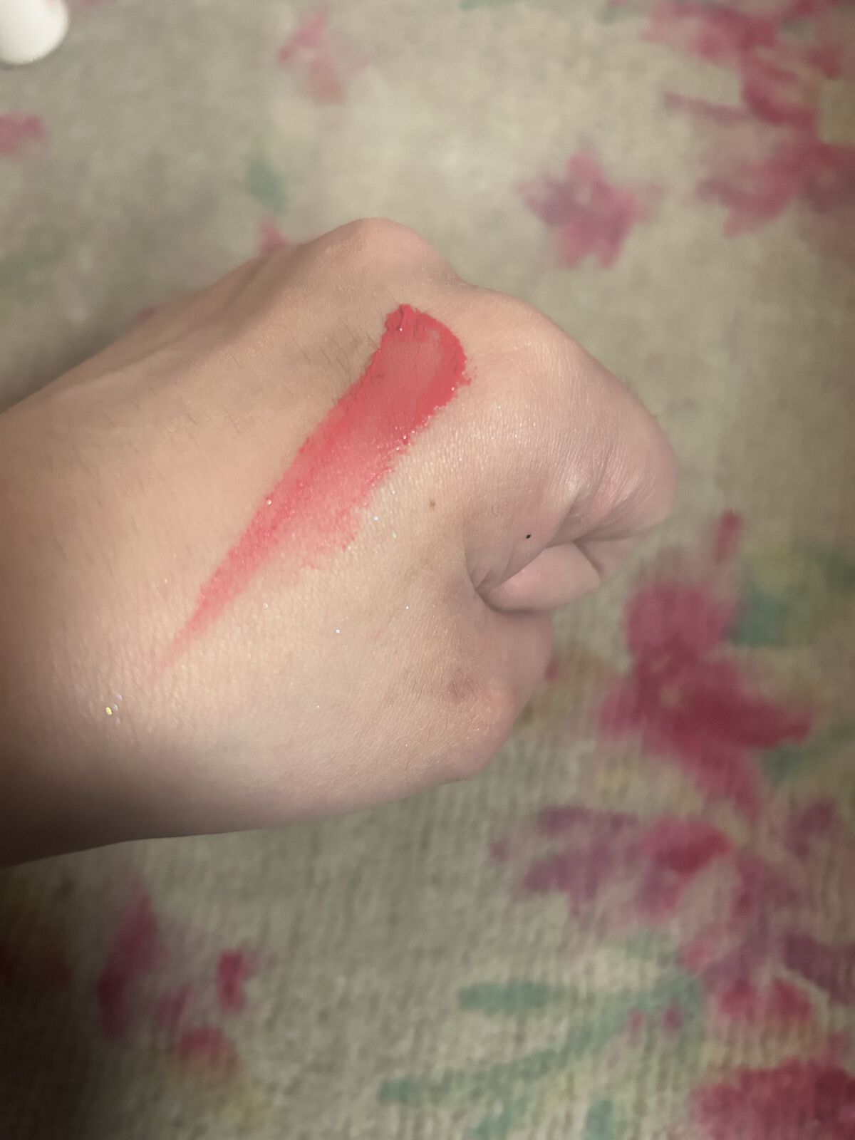 手の甲に出すと、派手なピンクに見えるけど唇に塗ってみると意外と肌なじみが良い色でした。フューシャピンクほど強い色じゃなくてほんのり黄色みが入ってるから肌なじみがいいのかなと思いました。仕上がりは、マットな質感になります。 皮膚に付くとすぐ色が入ってしまうので肌につかないように注意した方がいいです。⚠️ 指でぽんぽん塗りするときは一度スパチュラに出してから塗るのをおすすめします。 派手になりすぎたなって思ったらティッシュオフすればちょうど良くなりました。 甘くて不思議な香りがしました。好き嫌いは分かれるかもしれません。これはプチプラ だから仕方ないって思いましたね。 白ベースのパケが夏らしくってかわいいですね。白だから汚れが目立ちやすいのが玉に瑕です💦