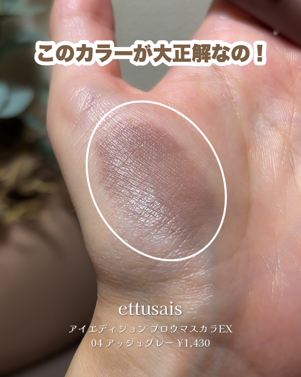 私の運命眉マスカラ✨/またまたリピートをしてしまったのでご紹介🥰自眉が濃い私の悩みを解決してくれた運命とも言えるカラー🫶自眉が太くて濃いので眉マスカラ選びがかなり大変だったんですがかれこれこれを3回リピートしてます🩷元の眉毛が綺麗な方や薄い眉毛の方には合うか分かりませんが、私みたいに黒くて太めの方には合うと思う🙆♀️ぜひ参考にしてもらえると嬉しいです🐰【製品概要】ettusaisアイエディションブロウマスカラEX04アッシュグレー¥1,430#ettusais#エテュセ#アイエディション#アイエディションブロウマスカラ#アイエディションブロウマスカラ04#眉マスカラ#アイブロウマスカラ#眉メイク#アイブロウメイク#ブラウンで魅せる目もと