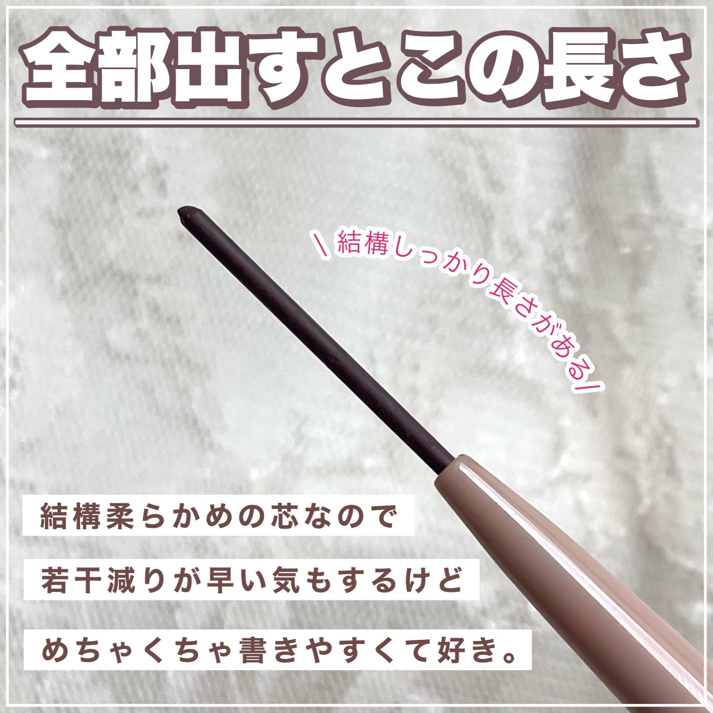 1.7mmと細かい部分まで描きやすいペンシルですが折れやすいので力の加減にご注意下さい⚠ 描いてからは力を入れないとなかなか落ちにくい所は🙆 ペンシル自体にも保湿成分が!! 乾燥の時期には良いです!!