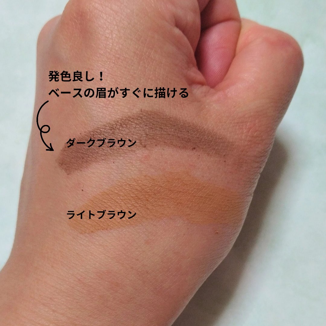 チップで描くだけでふんわり眉。 保湿成分にグリセリン配合、コスパも発色も文句なし。 強いてデメリットを上げるならどんだけ気をつけてもキャップを引き抜く時に粉が飛び散る事かも🧐 個人的にはウォームブラウンがとても可愛いと思いました!