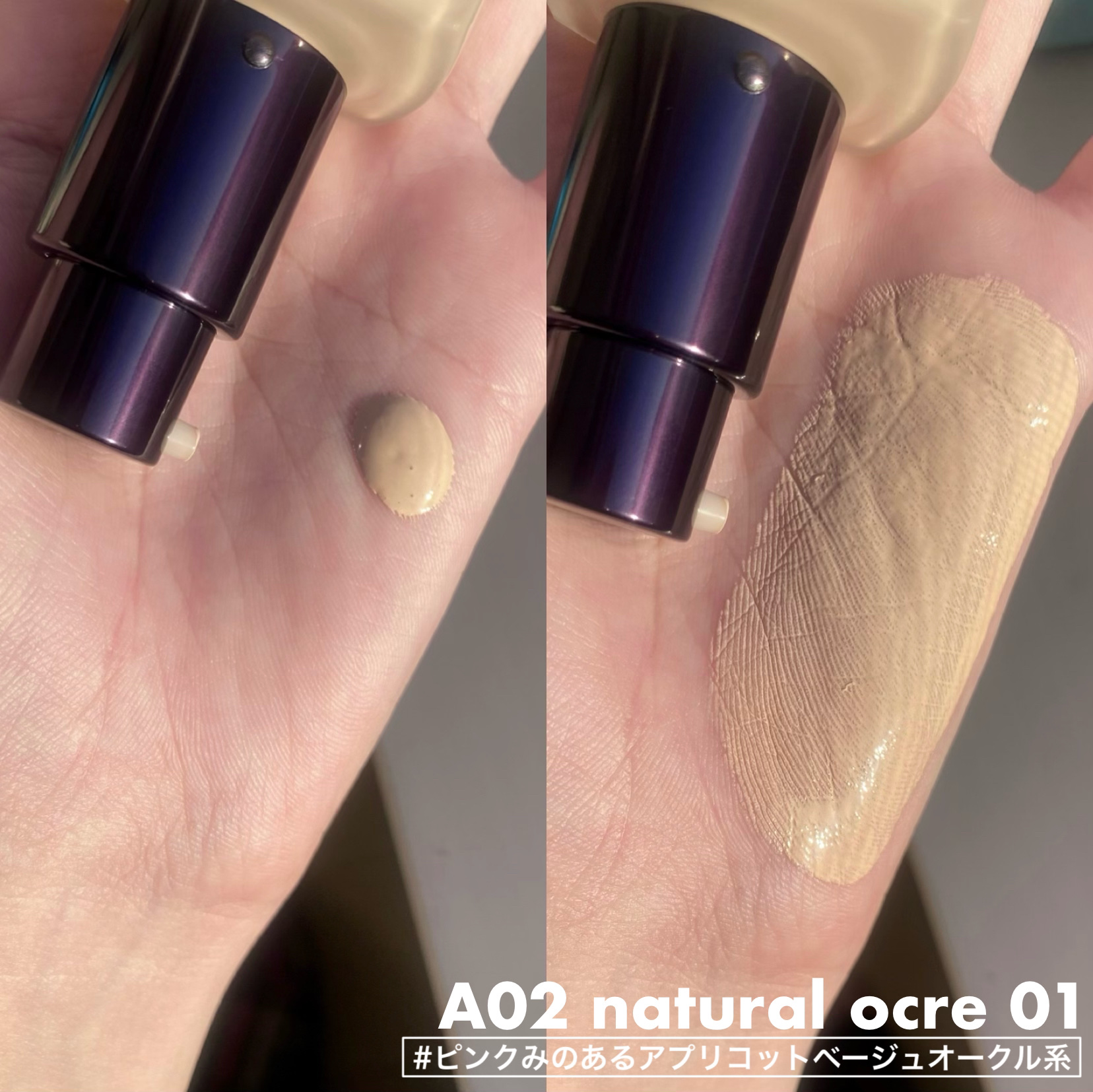 お肌にぴったりフィット薄くて崩れにくい⚡️ ナチュラルオークルA02は標準色より一つ明るめカラー カラーコレクティングプライマー 03 ペールブルーと合わせ技で より綺麗に仕上がる🥹