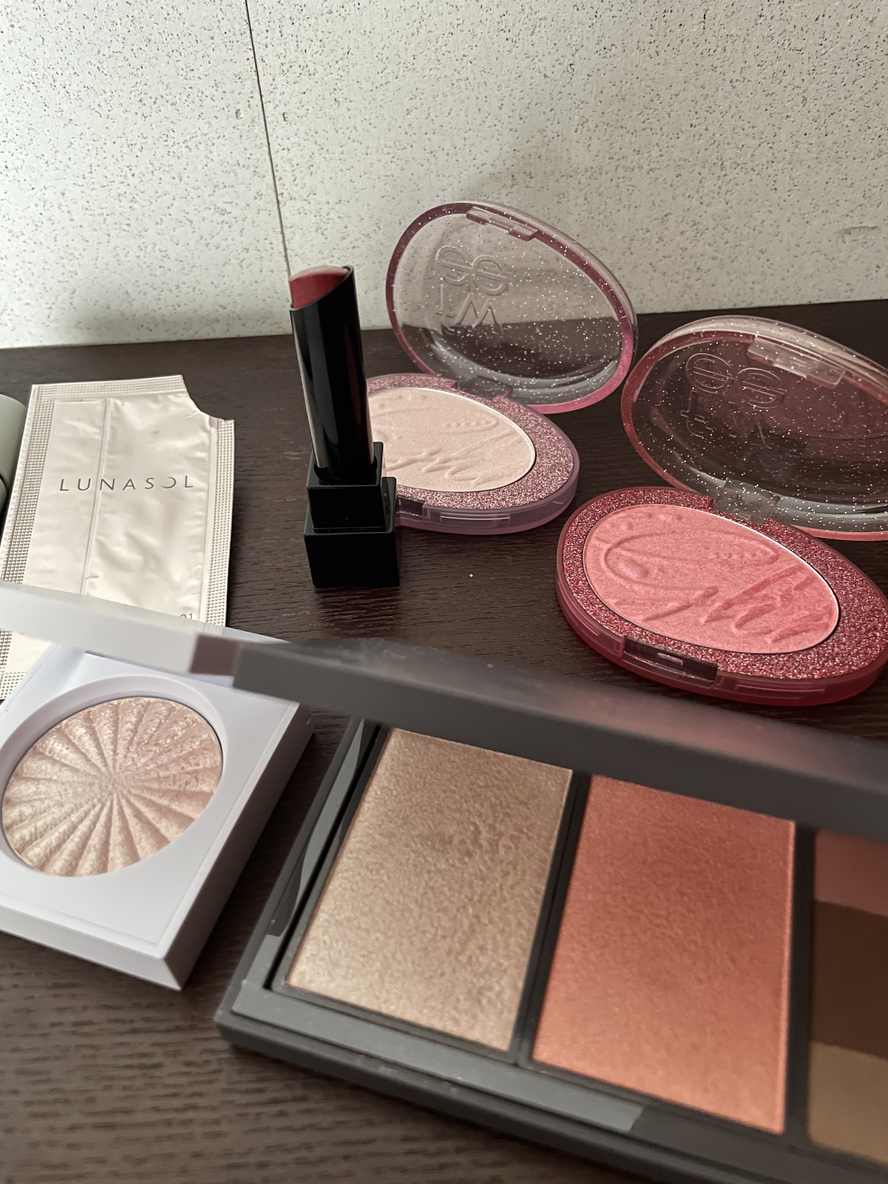 OfraCosmeticsMINIHIGHLIGHTERミント何とかという色のハイライト。これは大好きです。全色欲しいくらいです。確か9種類くらいあったかなー。小さいし立てて収納すれば揃えられるかも!さて収納の話。ライン使いという考え方を知ってから今までの分類と違うしまい方にしようか悩んでしまいます。今まで、引き出しそれぞれリキッドファンデハイライトチークアイシャドウ粉などと入れていたのですが、、ばーんと揃えた写真のカッコ良い事。なのに私と来たら今日も何だかチグハグで💦他にはルナソルの下地の試供品を使いまして、、、それなら!リキッドファンデの試供品ももらってるのだからそれを使えば良いものを。やれやれ。それと、もう一つ、下地を使ってみました。タイムシークレットの緑。こちらは、そこそこの気に入り具合。悪くないです。伸びたらピタッと密着します。ただ、色はグリーンじゃなくても良かったかな。そして、ライン使いをするんだという決意ができたので、使い終わったらそこまでにします。あと、一応乾燥か脂性かで言うと乾燥気味なので、このさらっというのは求めていないかも。もう少ししっとりと使い終わる方が好みではあります。