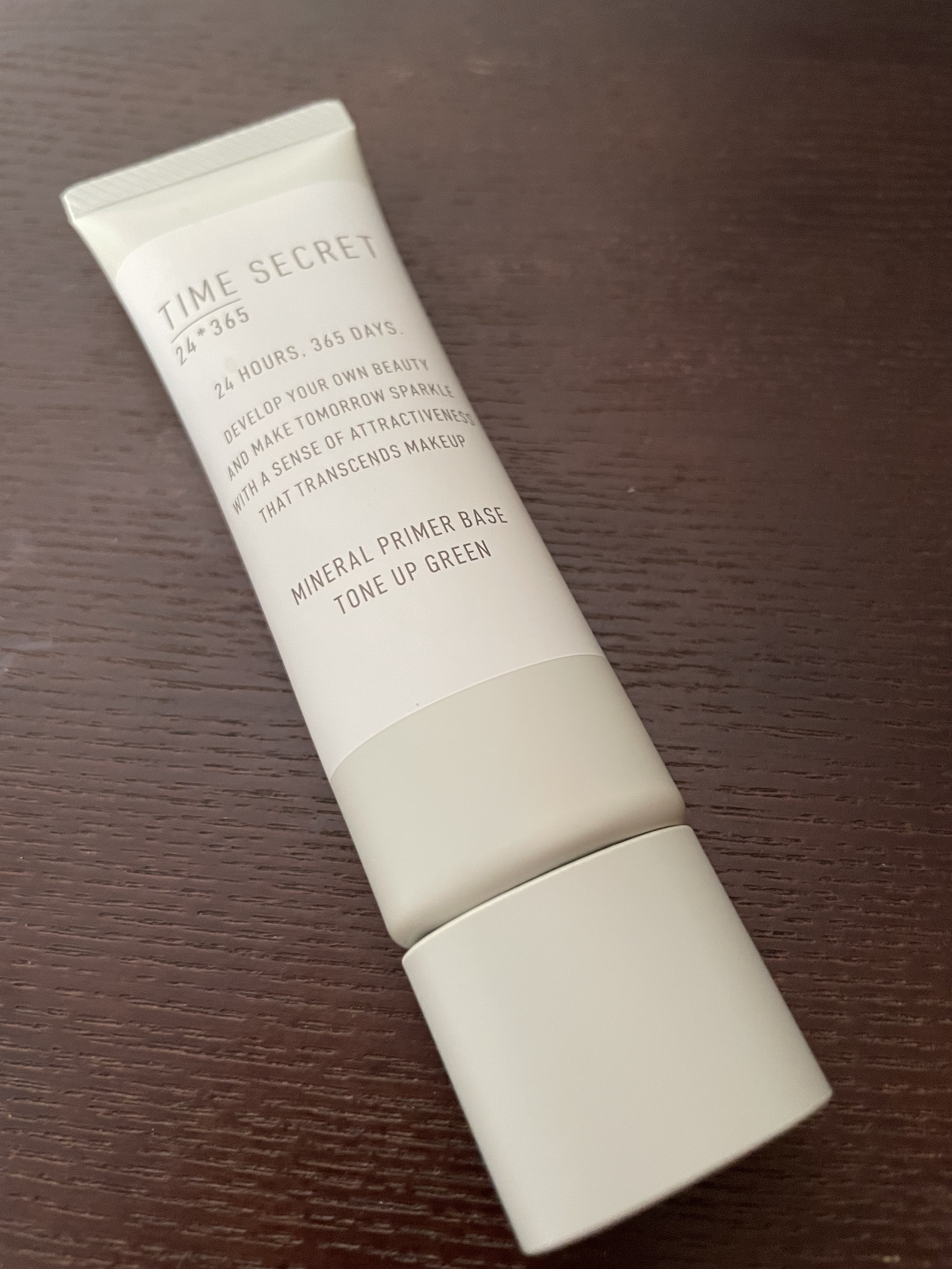 TIMESECRETミネラル薬用プライマーベースグリーンです。好きですよ。パールとか入っていないので自分には使い易い下地です。ピタッとサラッと密着します。乾燥気味よりも混合肌の方などには適しているのかな、と。これもだいぶ使っていますがなかなか減らず。主に赤みの出ている鼻周りだけに使っているからか、コスパは最高。次に買うならピンク。でも粉とこれだけでは無理かなー。ファンデを塗りたいと思いますので。これと手持ちのコンシーラーとプレストタイプのフェイスパウダーで何とかなればもう一度ピンクで挑戦しても良いかも、です。春〜夏にはとても使い易いと感じるはずです。