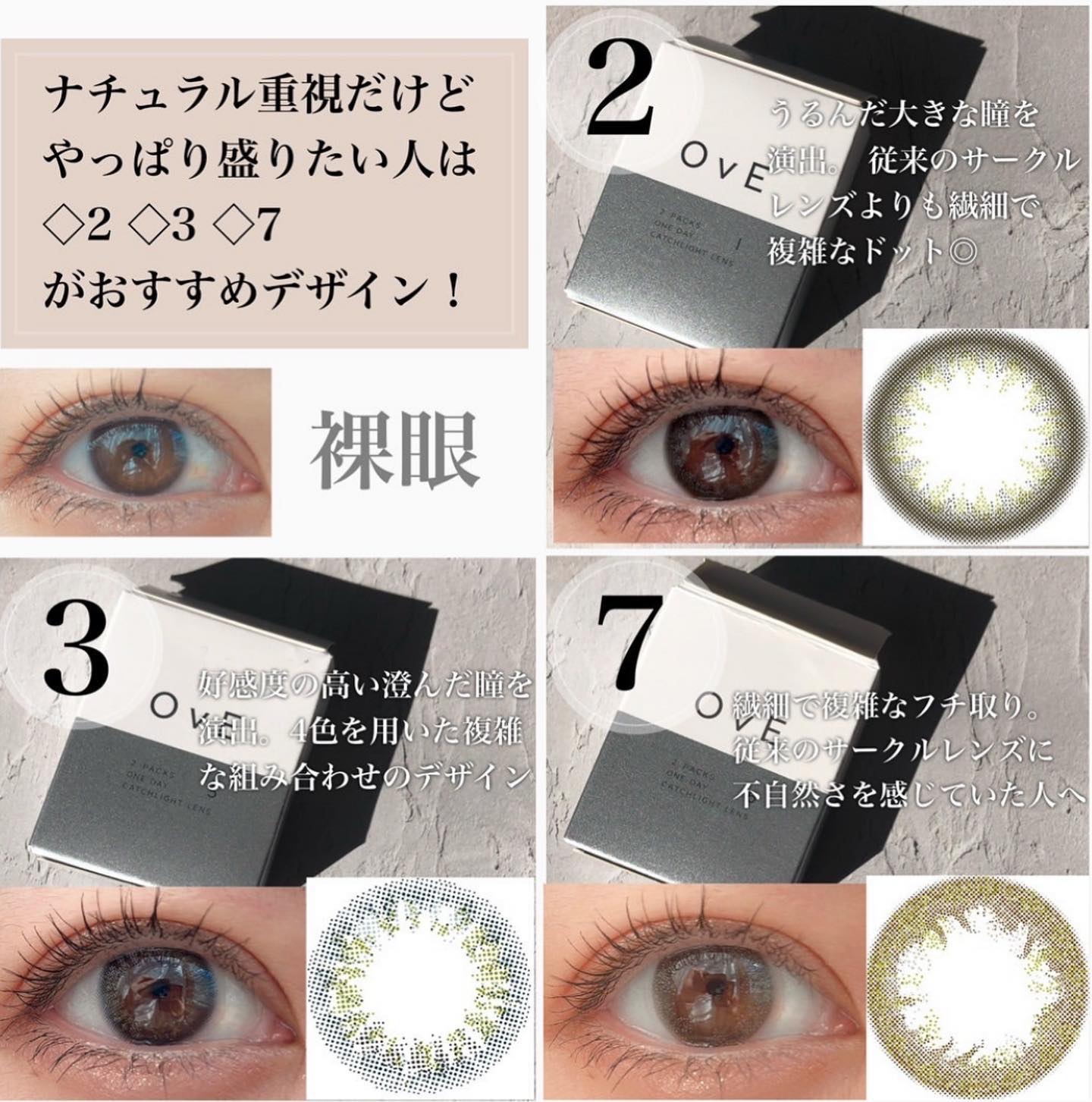 OvE(オヴィ)1day使い捨てコンタクトレンズ使って衝撃を受けた新世代カラコン!!自分の瞳を活かして潤みと輝きを与える光デザインのキャッチライトレンズ。瞳の中でキラキラと輝く光を表現し、透明感と潤いに溢れた瞳を実現してくれます◎☑︎盛りすぎるカラコンに抵抗が出てきたオトナ女子☑︎学校の規則が厳しい学生さん☑︎カラコンユーザーの男性…ナチュラルで綺麗な瞳をつくりたい人達にオススメ!うるっとしたナチュラルな輝きを出したい人は◇1◇5◇6ナチュラル重視だけどやっぱり盛りたい人は◇2◇3◇7透明感&抜け感を出したい人は◇4◇8左右非対称なレンズも多く、OvEならではの複雑なデザインが印象的◎こだわりが感じられる唯一無二のカラコンです!#オヴィ#ove#カラコン#カラコンレポ#カラコン着画#カラコンレビュー#抜け感メイク #ニュアンスメイク #メンズカラコン #ナチュラルカラコン#透明感カラコン #オヴィワンデー#オヴィカラコン #カラコン比較 #カラコン好きさんと繋がりたい#大人カラコン#リピ確カラコンレポ