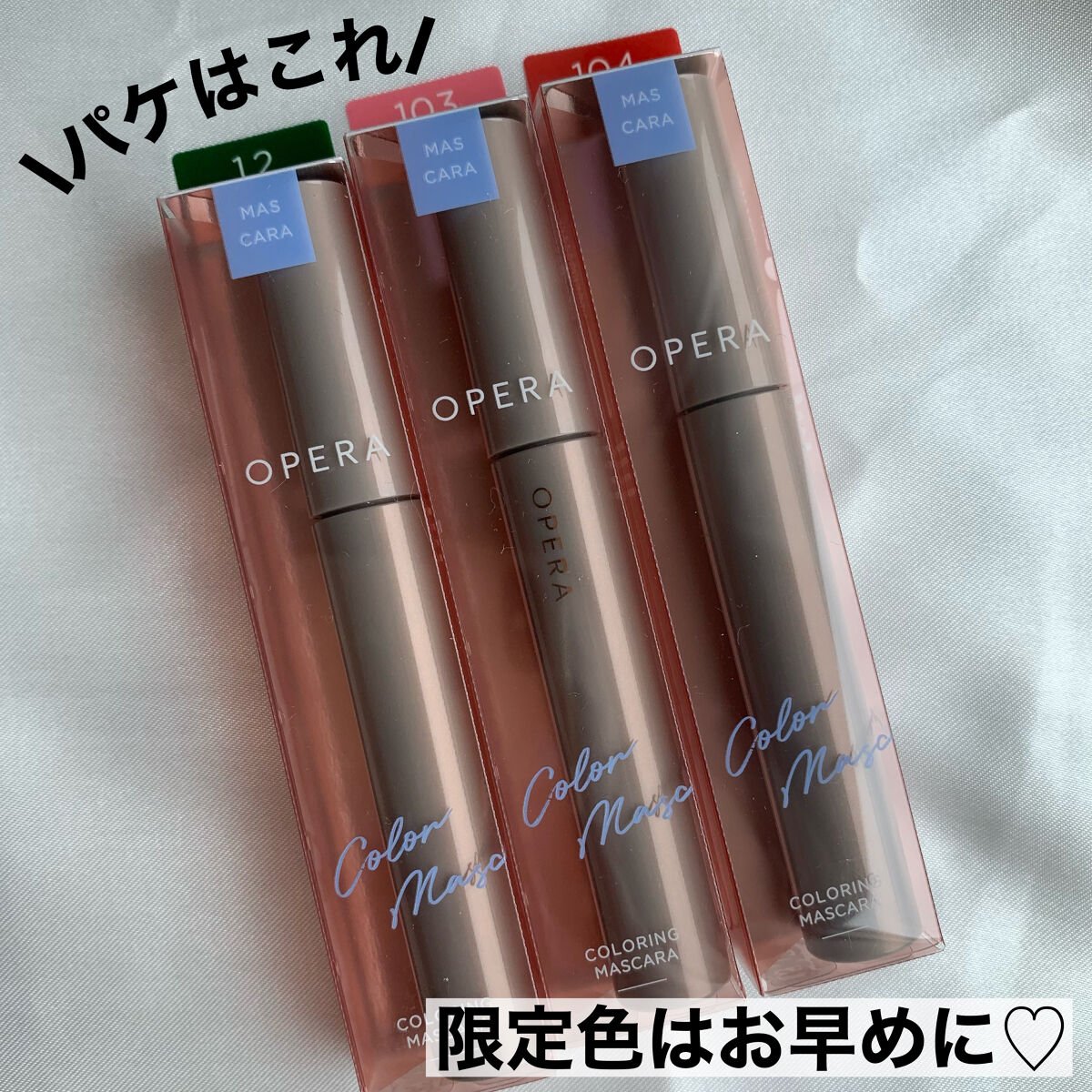 オペラのカラーマスカラは高発色でダマになりにくく、馴染みがいいから本当取りいれやすい🙆♀️ 新色&限定色は、春らしい鮮やかな色合いに、なんと微細パールを配合!✨ 高発色だけど透明感のある仕上がりに🥺💓 しかもね、お湯オフできるの🚿凄くない?! まつ毛に負担かけたくないし、リムーバー使うのはめんどくさいから(←ズボラ)本当ありがたい🙇♀️