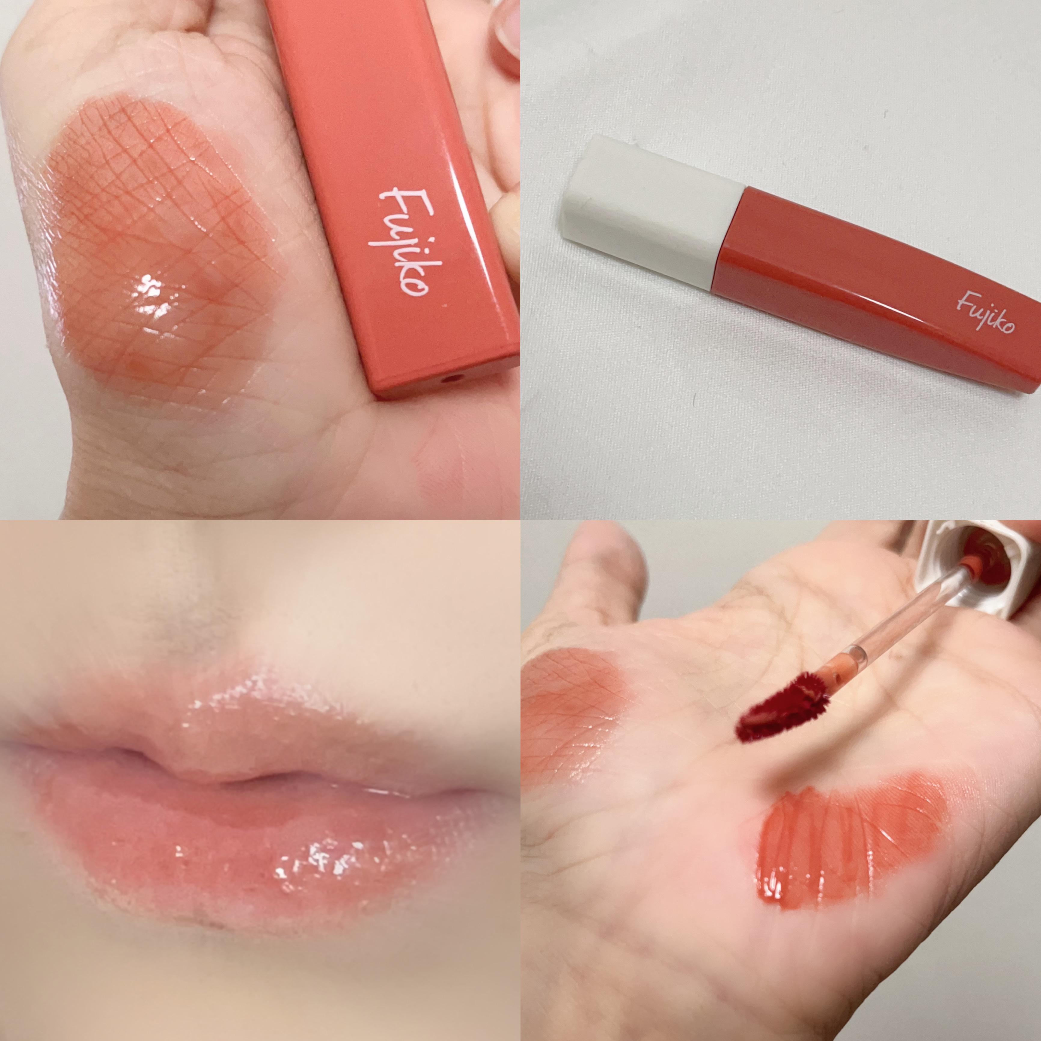 フジコのリップは重ねても塗り直しても荒れなくて、すごく信用してる🙆♀️ 見た目もスリムで可愛い! ツヤツヤ系で可愛いかった! プランプリップってことですが、最近マキシマイザーを使っていたこともあってか、スースー感は、あんまりというかほぼ分かりませんでした😂 これから春夏と明るめリップが使いたくなる季節なので、ぱっと明るくしてくれる透け感オレンジ🧡可愛い!たくさん使います🧡 色味がそもそも濃くないので、色持ちを期待する人には向いてないかもしれないですが、マスクも外すことも増えそうなので、ちょちょっと塗るのにも良さそう🙆♀️ カバンに忍ばせます🧡
