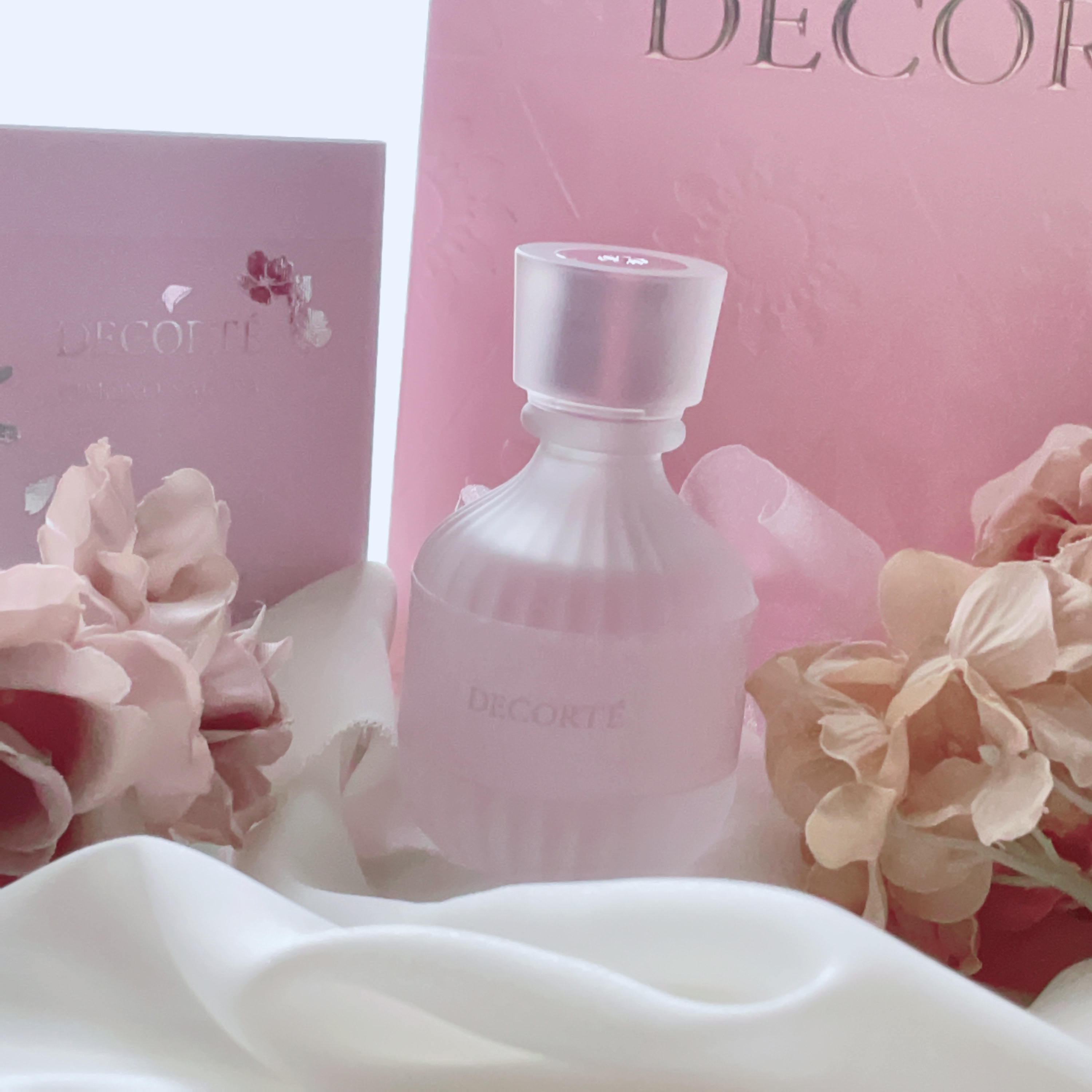 【使った商品】DECORTÉキモノサクラオードトワレ50ml【商品の特徴】ふわりと桜の香りを表現※香りの特徴トップ:ライチミドル:桜、ピオニー、ミュゲ、ローズラスト:イリス、ムスク、アンブレットオーガンジーのリボンで着物の帯を表現すりガラスの...