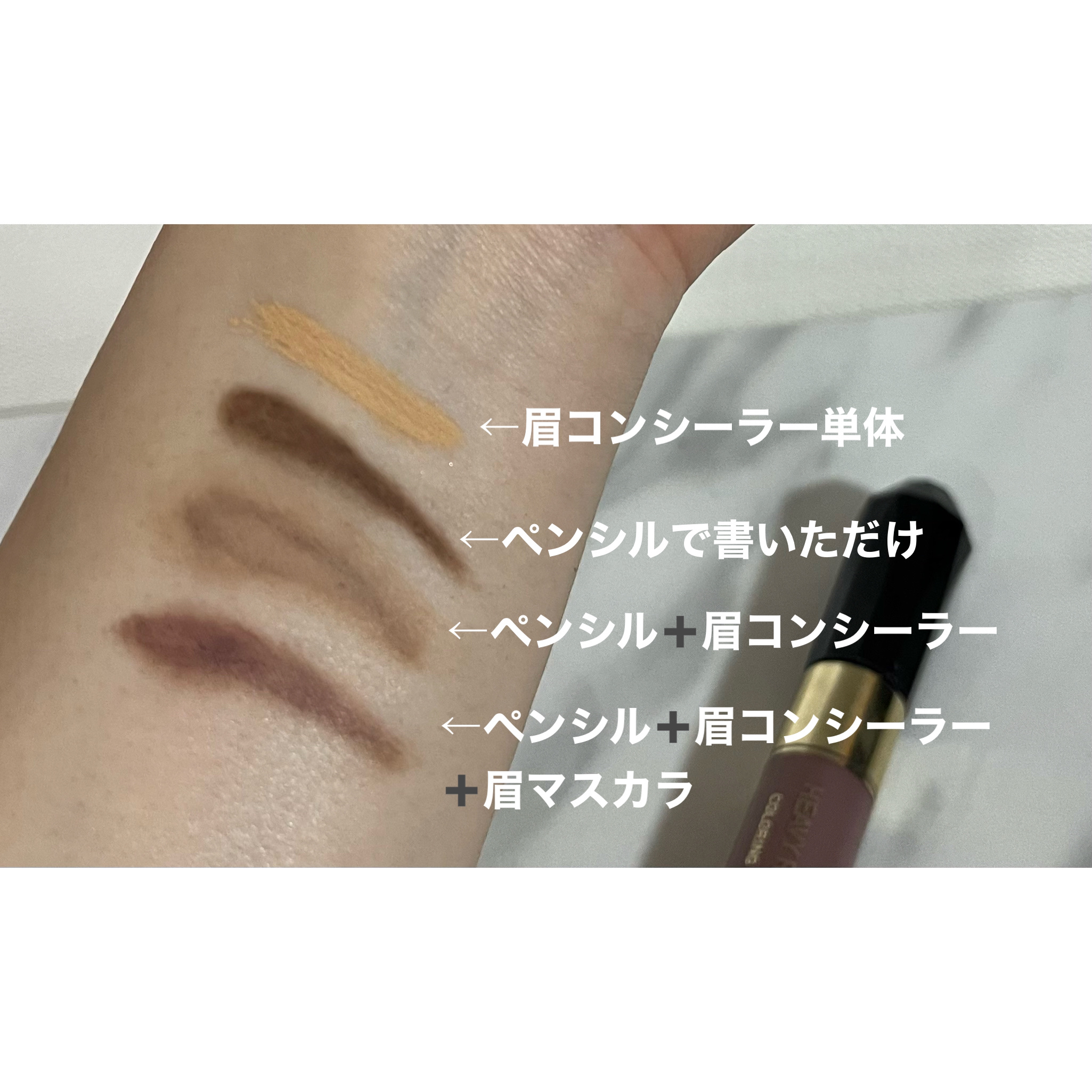 ブラシは大きめの柔らかなタイプです。 少ない量でもしっかり発色します! 乾くとカチっとするので落ちにくく、 これ無しで眉メイク完成出来ない💦 黒髪さんにも良さそうだし、 ブラウン系以外の色初めて使ったけど自然で浮かないの感動✨