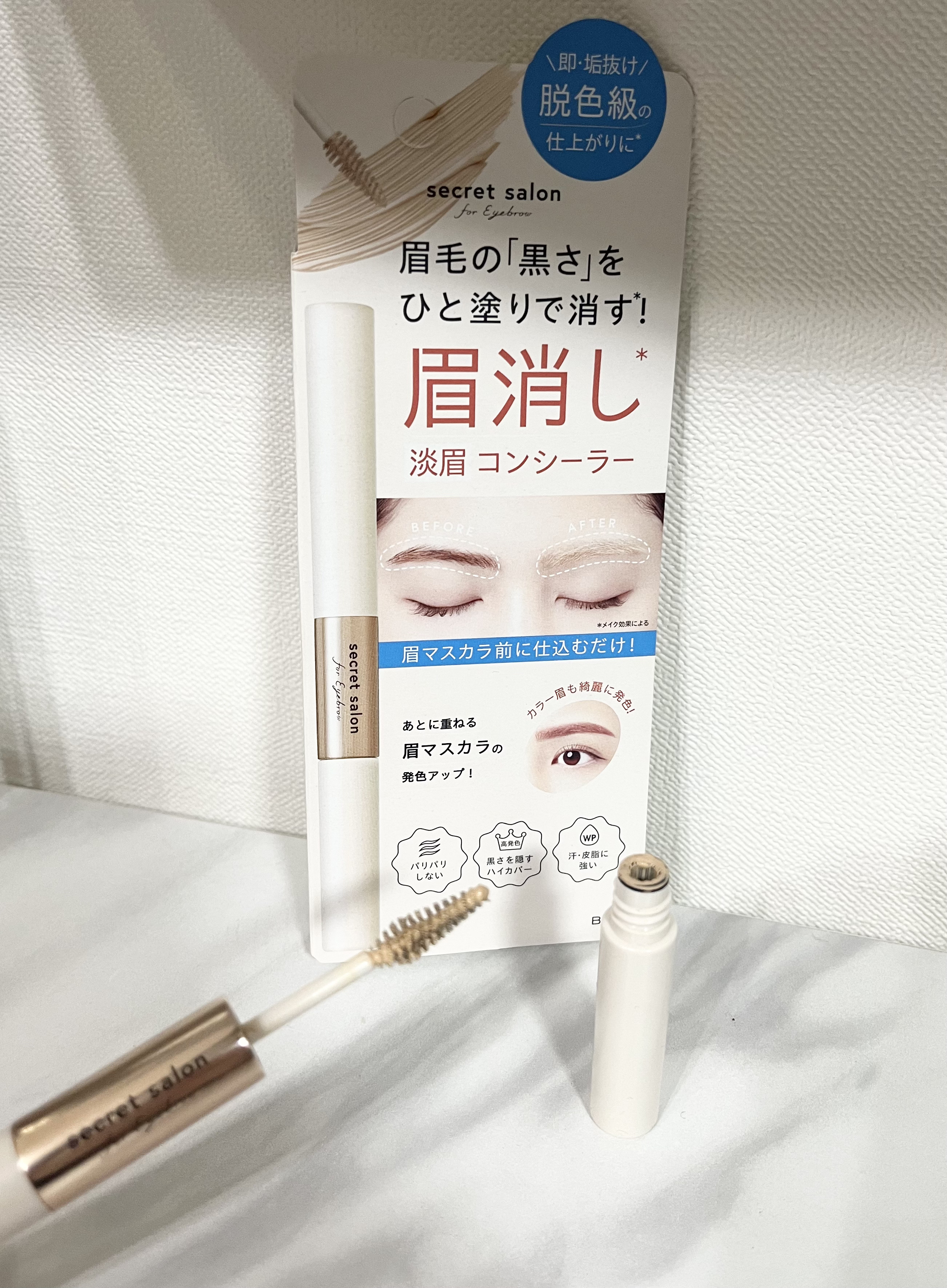 めちゃ良いのと出会ってしまったぜ…【シークレットサロン淡眉コンシーラー】(-̫᷅̈-᷄)✨¥1100なんか薄眉って垢抜けてていいなってふと思ったわけ。自眉がないわたくしペンシルで眉尻までキッチリ描くので眉マスカラ使っても結構濃いめの眉毛になりがちだったんですよね。出先でメイクコーナーに出会うとついついふらっと吸い寄せられてしまう人間なのでいつものごとく店内を物色していると眉毛コンシーラーなるものを発見ʕ•͡દ•ʔ💡その発想は無かった…そうか、眉毛にコンシーラー‼️✨【使い方】①ペンシルやパウダーで眉毛を描いた後、淡眉コンシーラーを毛流れに逆らうように塗ります。②眉頭から眉尻まで毛流れに沿って塗り、全体の毛流れを整えます。③その上から眉マスカラを使います。眉マスカラの前に…え、せっかく描いた眉毛グシャってなったりしないのかな…キレイにのるのかしら…【POINT】🌟コンシーラーを塗る前にスクリューブラシで眉毛全体を梳かしておくと、眉毛に付着した汚れ(ファンデーションなど)が取れ、コンシーラーを均一に塗布できます。🌟眉マスカラを重ねるときは、整えた毛流れを崩さないよう、上からなでるように優しく塗布してください。←⚠️これめちゃめちゃ重要!⚠️眉コンシーラーとブラシが1本になってるタイプ!パウダーとペンシルで眉毛完成した上にドキドキしながらそっと初の眉毛コンシーラーをのせてみる…使い方通りに眉尻から塗って、その後眉頭から。うんうん!描いた眉毛が剥げるのを心配していたけどそっとのせていく事で良い感じにのせられた!その上からすぐに眉マスカラ使ったけどちゃんと眉の色薄くなってる!眉コンシーラー使ってない時と比べて明らかに薄めな淡眉で垢抜けた感じ😍♥️ええやんこれぇ〜♥️ってドレッサーの前でちょっと1人で感動したよねwwwしばらくマジマジと自分の眉毛見てたもん(笑)眉毛脱色とかは肌にダメージありそうだし考えたことなかったから、こんな手軽に垢抜け眉毛にできるアイテムがあったのか‼️と。うーんこれだからコスメは奥が深いというか楽しいよねぇ🥴👍で、重要な持ちはどうかなんだけど、これもクリア🙆♀️仕上げに愛用のオルビスの眉毛コートでガードして一日過ごしてもちゃんと残ってました👏これが大事だから何より🔥汗・皮脂に強いウォータープルーフ処方。パリパリしない柔らか仕上げ。トリートメント成分としてパンテノール、加水分解シルク、ヒアルロン酸Na配合。プチプラでお手頃だし、薄眉にしてみたいんだけどな…って方ぜひお試しを(`ω´)👍#シークレットサロン#淡眉コンシーラー#眉毛_脱色#眉毛コンシーラー#眉毛_コンシーラー#眉マスカラ_眉毛濃い