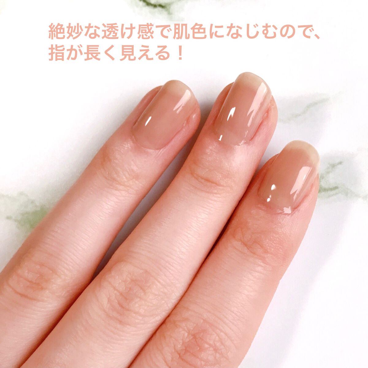 オールインワン機能がとにかくすごい! 速乾なので、重ね塗りも時間もかからないし、お手軽時短◎ トップコート無しとは思えないほど、これだけでツヤが出る。 爪に色が移るようなことも無いし、酸素を透過するせいかオフ後の乾燥感も無い。 新色の上品ベージュの色味がとにかく素敵! 少しナチュラルな発色なので、ハッキリと色を出したい人は3度塗り以上をおすすめ。 仕上がりも良く時短にもなるし、他のカラバリ含め色味も普段使いしやすいので、ネイル初心者さんにもオフィスネイルにも、めちゃくちゃおすすめです!