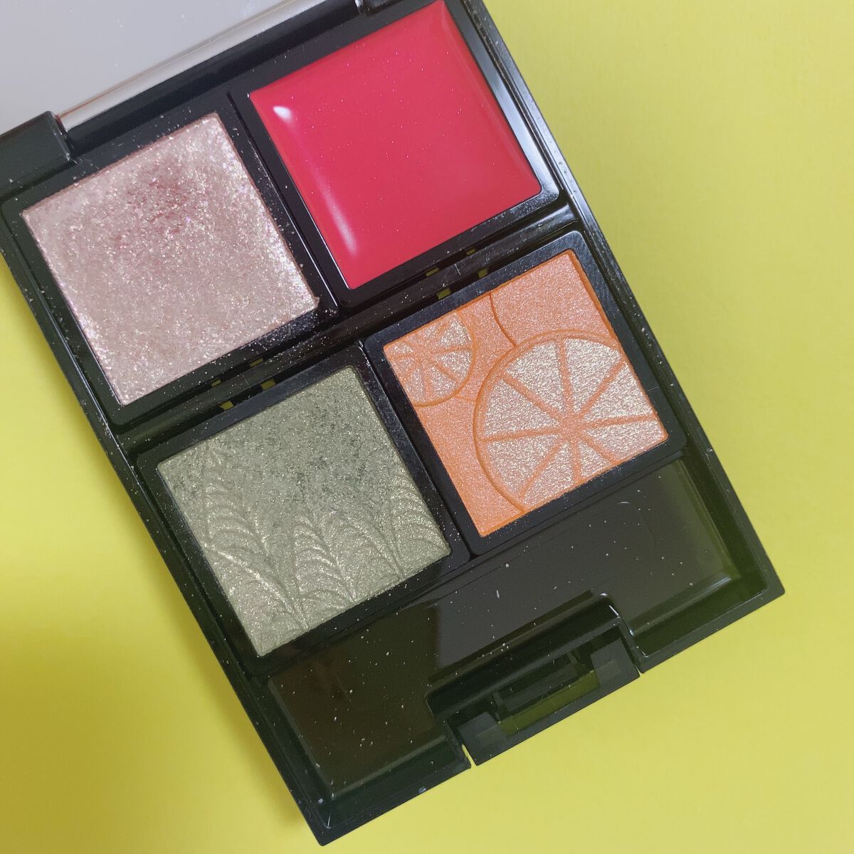フランボワーズソース ビタミンオレンジ フレッシュレモン キウィシュガー 2023年春の限定色。 派手目なビタミンカラー! パウダーアイシャドウはサラサラ系なので アイベース必須。