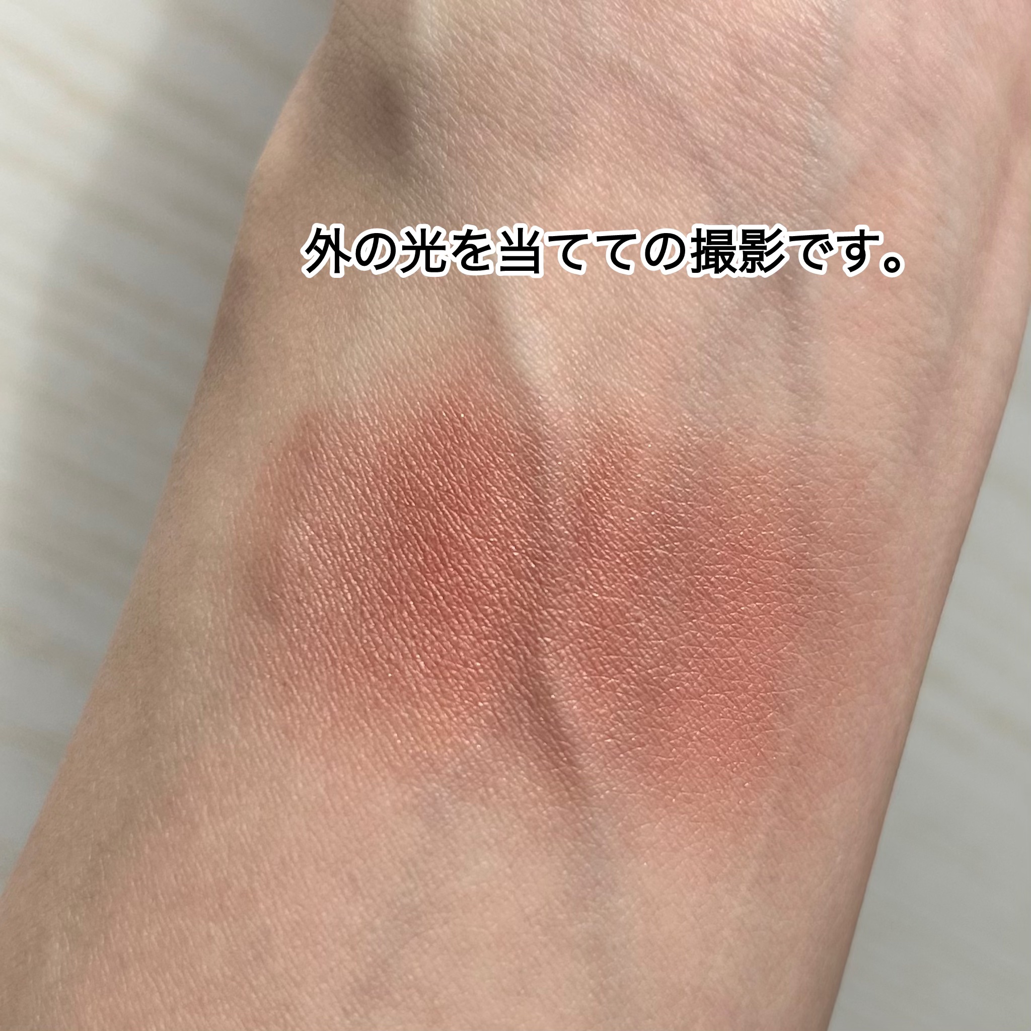見たままの色が出て高発色なんだけど、透明感のある仕上がりがポイント💓 パールぎっしりでツヤ感のある仕上がりがめちゃめちゃ可愛いです😍 高発色というこのチーク自体の特徴もあって、いくらメイクさんに付けてもらったとはいえ普段チークをあまり使わない自分が使うにはハードル高かったかな?と思ったけど、調節しやすいので使いやすかったです👌🏻