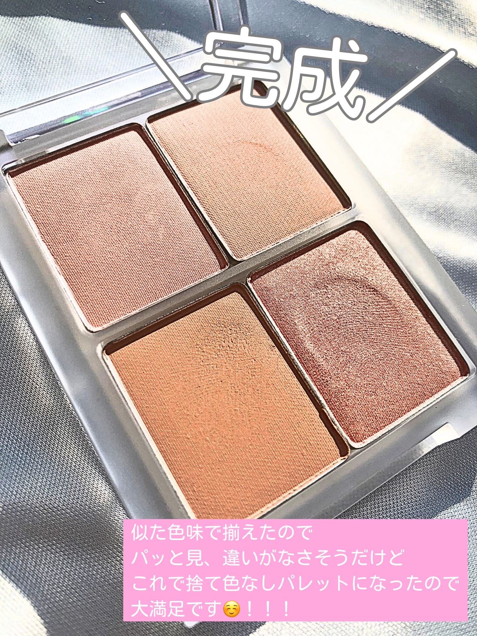 発色はとくにブラウン系のシャドウが1度塗りでも結構よいです!! どこかでテスターした時にめっちゃ発色よいなーて欲しかったのでタイムセールラッキーでした☺️ 右側はマットスモーキー 左側はラメピンク系にしてみました! 入れ替える際に爪で傷つけちゃって軽くショック😱 でも好みのカラーでカスタムできました!!