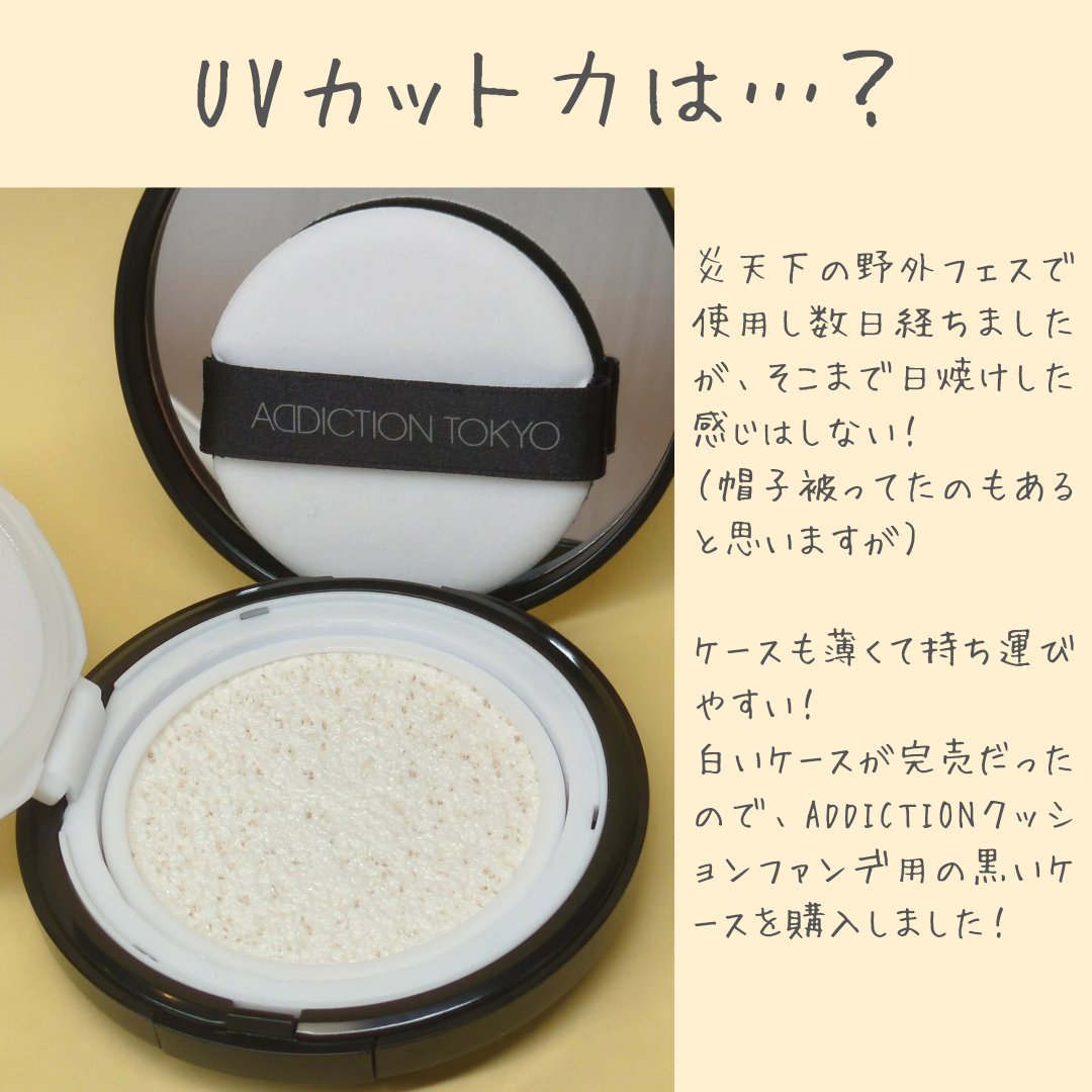 .アディクションスキンケアUVタッチアップクッション&クッションケース..アディクションのクッションタイプの#日やけ止め☀メイクアップの上から使えるので、出先でのお化粧直しにぴったり!日やけ止めはこまめに塗り直したほうが良いと聞きますので、こ...