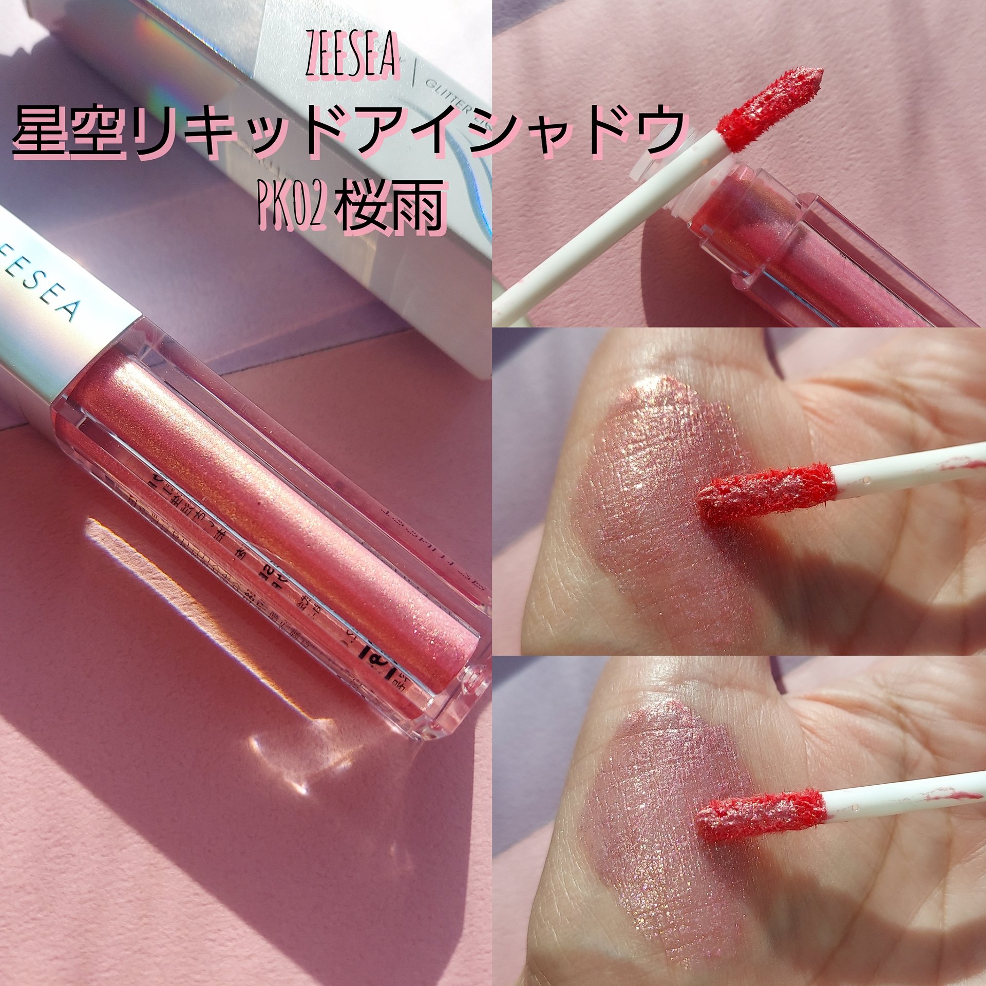 #zeesea#星空リキッドアイシャドウ#PK02桜雨#桜雨可愛いピンク。よれない、落ちないリキッドアイシャドウ。最近はまり、集めてます。スウォッチ参考になれば🙏