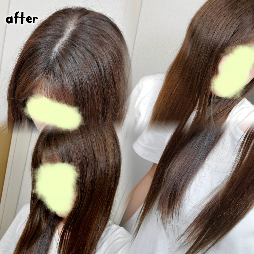 syossって評判良いイメージ✨ ミルクタイプ久しぶりだったのでちょっと不安だったのと 1箱で足りるか不安だったのですが 全然足りた!! 黒髪の部分もしっかり染まり、毛先の明るい部分は特に 透明感がわかる仕上がりに🥺✨ めちゃくちゃ気に入りました!! あとシャワーで流す時も流しやすかった💡 それでも仕上がり、仕上がりだけでなく量や流しやすさ、匂い全てですね、大満足‼️✨ これで色持ちや色落ちもよかったら リピ確定です✨ 色落ちも考えられているようなので期待☀︎