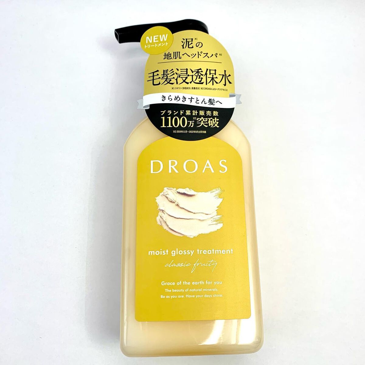 ドラコスで好きなヘアケアブランドの上位に入るのが、このDROASです! ドロアスのヘアケアは皮脂を吸着すると泥と保湿する泥が含まれていて、頭皮も髪も全部綺麗に美しくしてくれるのが特徴です🌸 黄色のグロッシータイプは、ダメージヘアの方にもオススメで、ツヤのある仕上がりになります✨ シャンプーのもこもこ泡も好きで、トリートメントもフルーティーな香りで癒されます! ブロー後は、しっとりめちゃくちゃまとまる髪になるんです!! そして、艶感がめちゃくちゃ綺麗に出るのがお気に入りです🌸 3つのシリーズがありますが、私はこの黄色のグロッシータイプがオススメです。