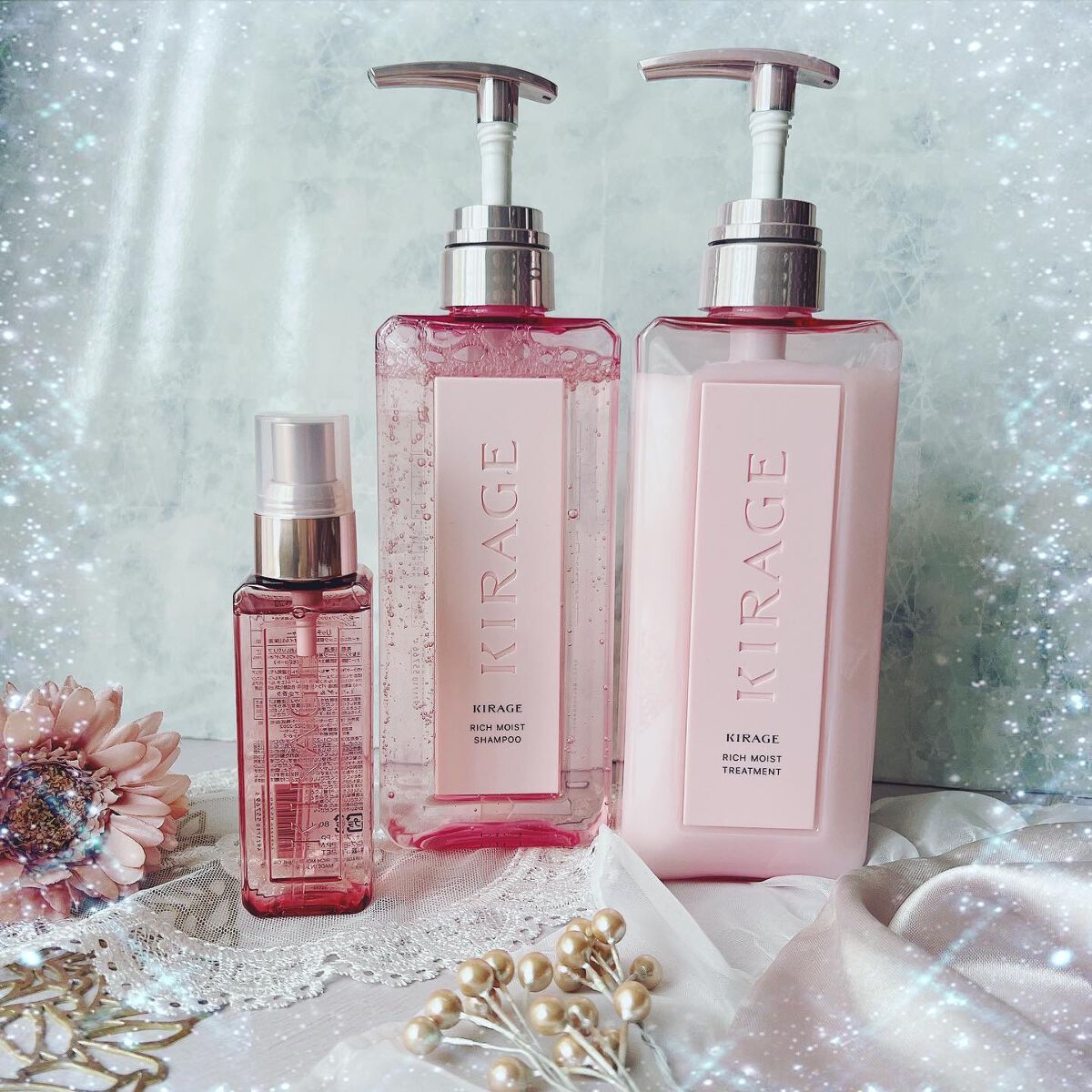 キラージュのリッチモイストヘアトリートメントを使用しました。シャンプー後に使用したのですが、シャンプーと同じ香りでとても癒されました。また、シャンプーだけでも凄くまとまったのですが、トリートメントを使用することで更にまとまった仕上がりになりました!!容器も可愛くおすすめです🌸#KIRAGE#キラージュ#天使の生ツヤリング#gifted