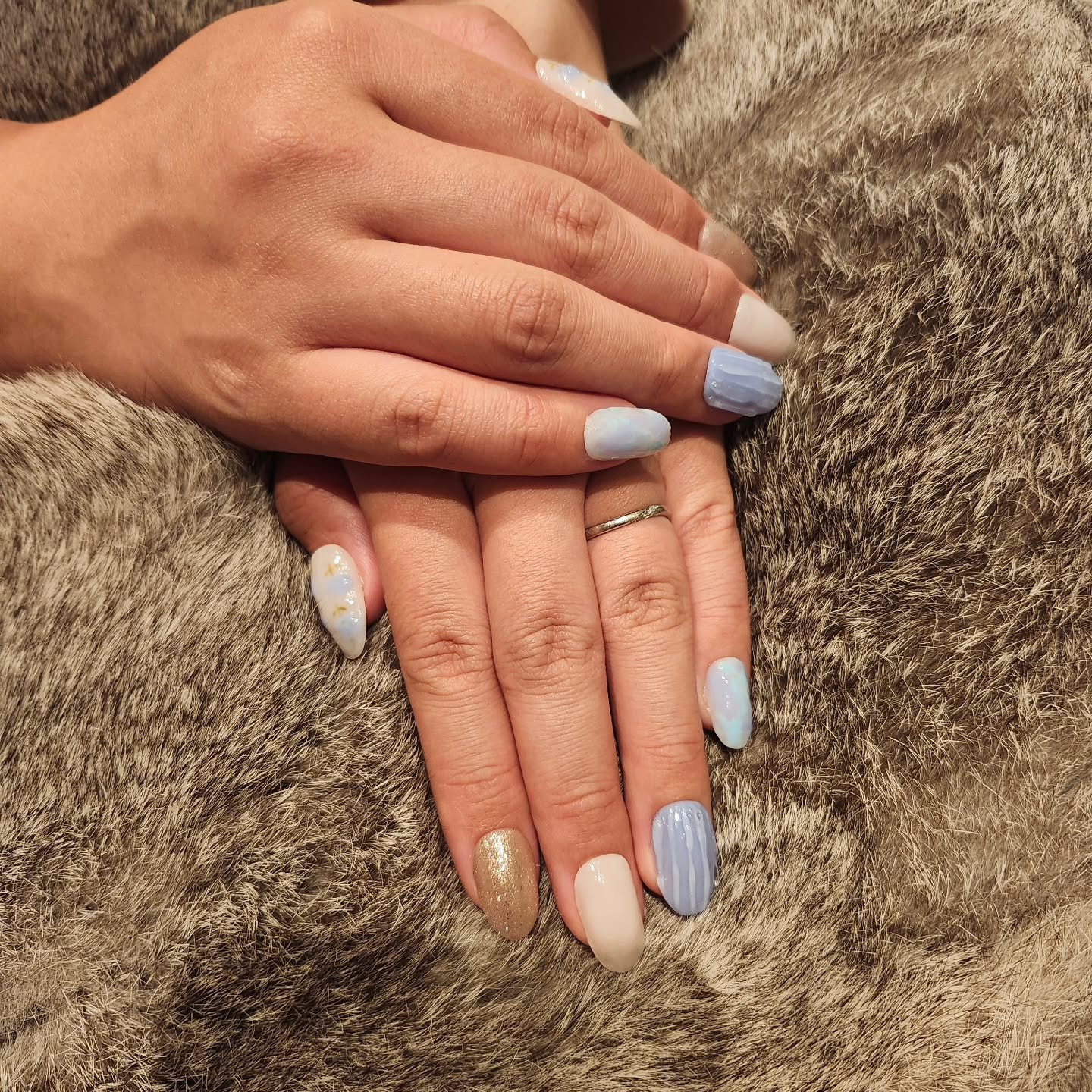 友達のアフタヌーンティー用のネイルチップを作りました!水色のお花を描くっていう挑戦もしました!もっと練習して上手くなりたい(*´-`)人差し指は、ピンクのカラージェルの上からLURRIRのラメを重ねました!LURRIRのジェル、最近使いすぎて...