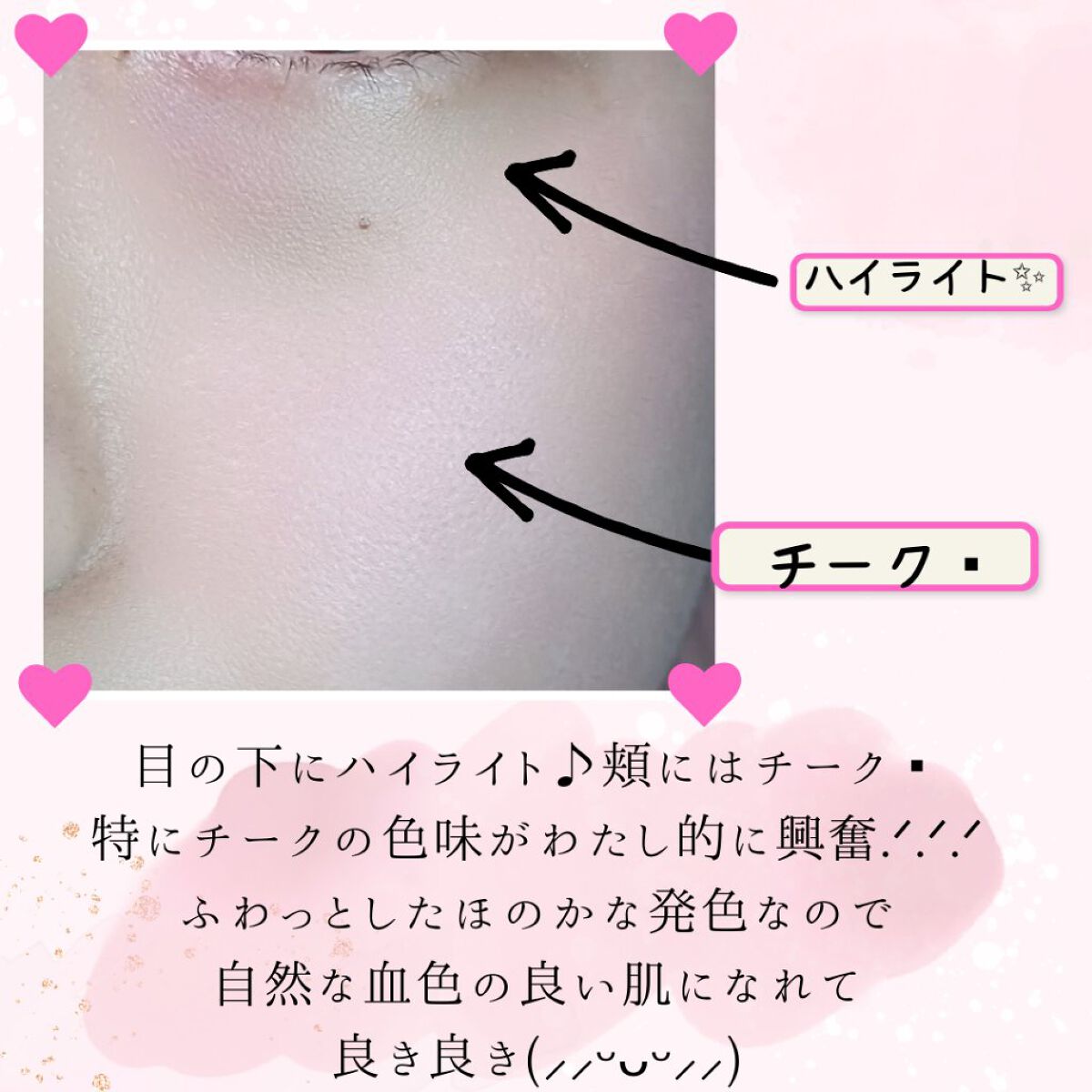 ハイライトカラー☟ 少しパール感があって自然なツヤ感が出せるような色味かなっ✨ チークカラー☟ ブルベ夏の方に合うような色味♪ ミルキーなピンク🩷って感じなんだけど…… マット系でふわっと色づくような色味なので血色の良い自然な色味を出してくれるような感じです𓆸 ⠜ これ1つでハイライトとチーク.ᐟ.ᐟ どちらの役割も果たしてくれるから便利❦