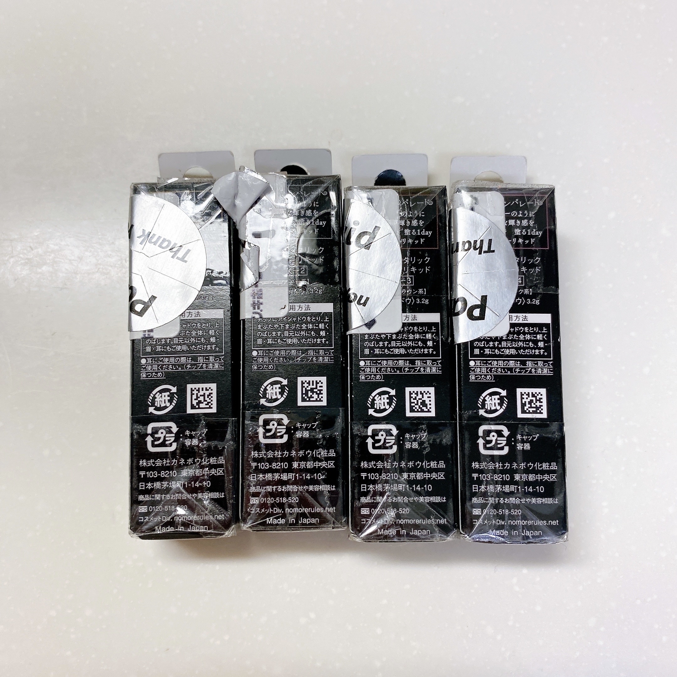 【パケ買い/アイシャドウ】KATEメタリックジュエリーリキッド・EX-2 シルバー系・EX-3 コッパーブラウン系・EX-4 ルビーピンク系定価…各1980円 @ココカラファインはい、可愛いー!文句なしに可愛い!これは買うべし!箱によると1dayもつそうですよ!(何故かEX-1だけ買うの忘れてたみたいで…すみません🙇)最近のメイクはピンク・赤系ばっかりの私にとってはルビーピンクは勝ちすぎる!シルバーもメコスメの色を選ばなくて良さそうですね💡ブラウン系メイクが多い方はコッパーブラウンでしょうか。パッケージも可愛い、お色も可愛い、言うことなしのコスメだと思い星5つ付けました💡はっぴー🤟#KATE#メタリックジュエリーリキッド#シルバー系#コッパーブラウン系#ルビーピンク系#アイシャドウ