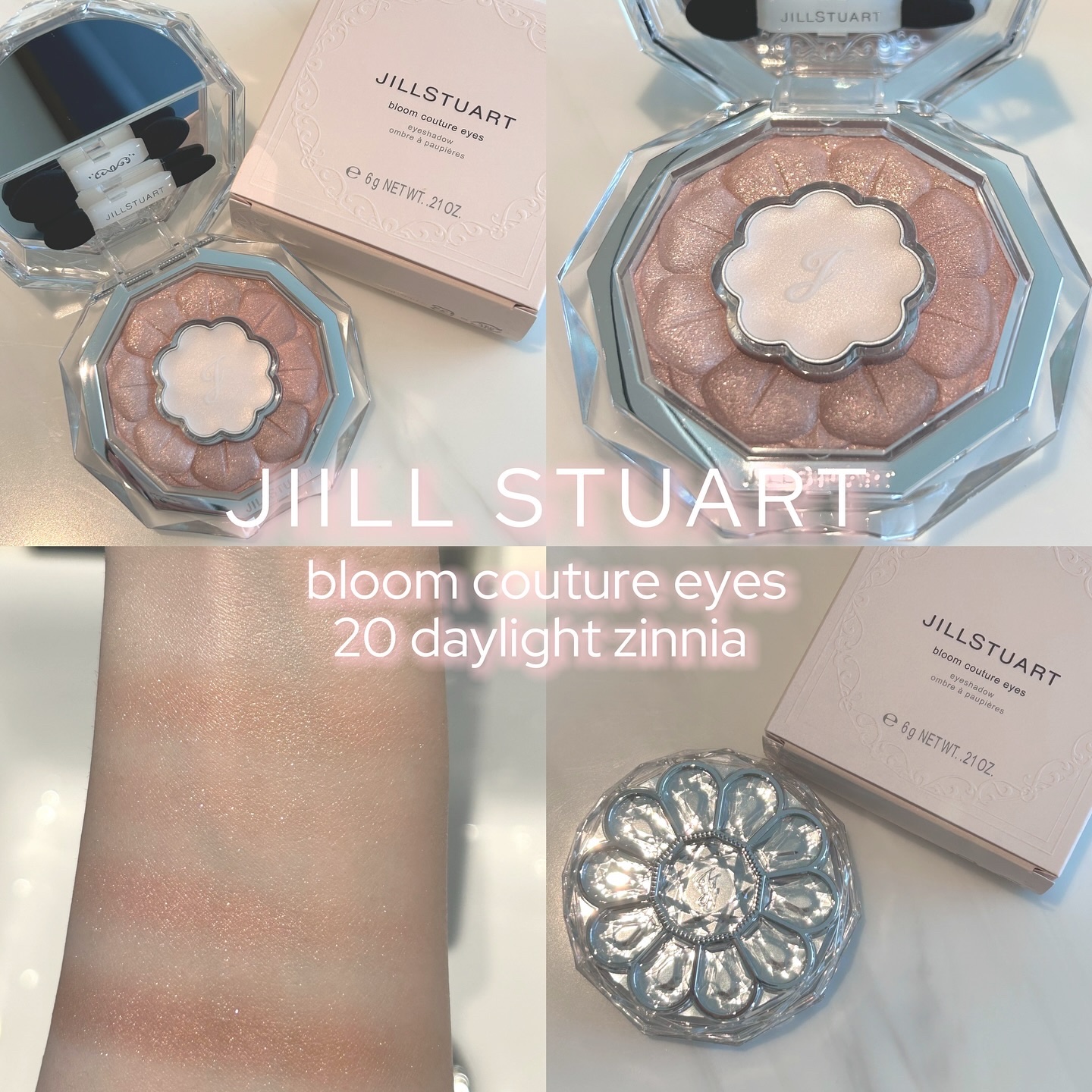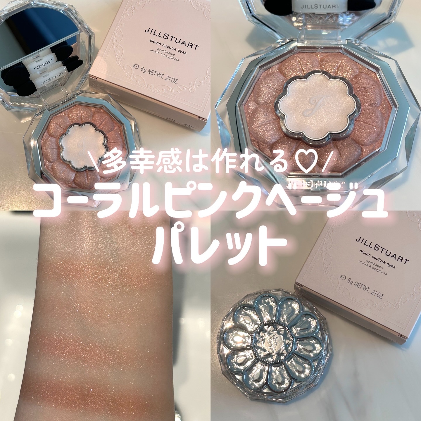 20 daylight zinnia日ざしを浴びて優しく咲くジニアのように、温かみのあるベージュコーラルのセット っとのことで早速使ってみました😊 私はブルベのサマーなのでコーラル系は挑戦したことがなかったのですが本当にラメが可愛くて ナチュラルな発色なのでPC関係なく 使える万能カラー😳🧡 左右を向くと繊細なラメがキラキラして 思わずうっとり🤤 涙袋に①をいれるとデカ目に見えてかなり いいです🥹❤️ あとジルらしいなんだかいい香りがする😊