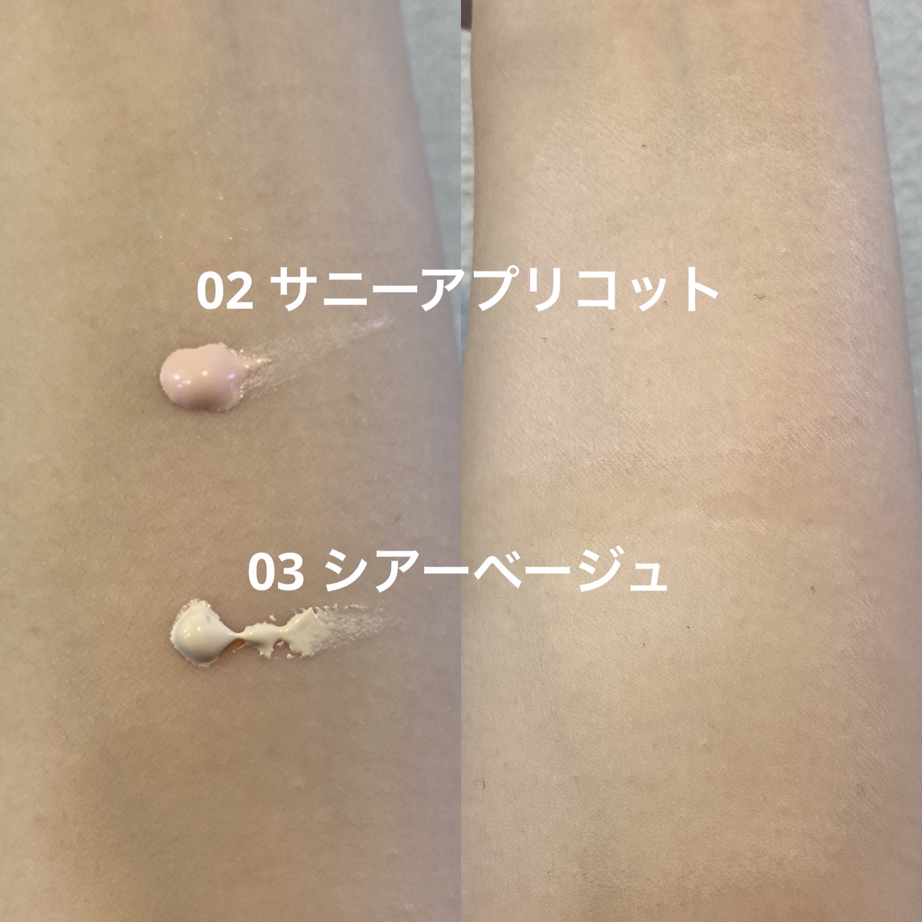 カラー名の通り透け感のあるベージュで、ほんのりカバーしてくれつつ、トーンアップしてくれます。 ベージュなのでカバー力は高いのかと思いましたが、手持ちのサニーアプリコットの方が、肌のアラが隠れるように感じました。 保湿力を感じる日焼け止めですが、テカりにくく崩れにくいと思います。 ただ適当に塗るとムラになってしまうので、丁寧に塗るかスポンジで馴染ませたほうが◎