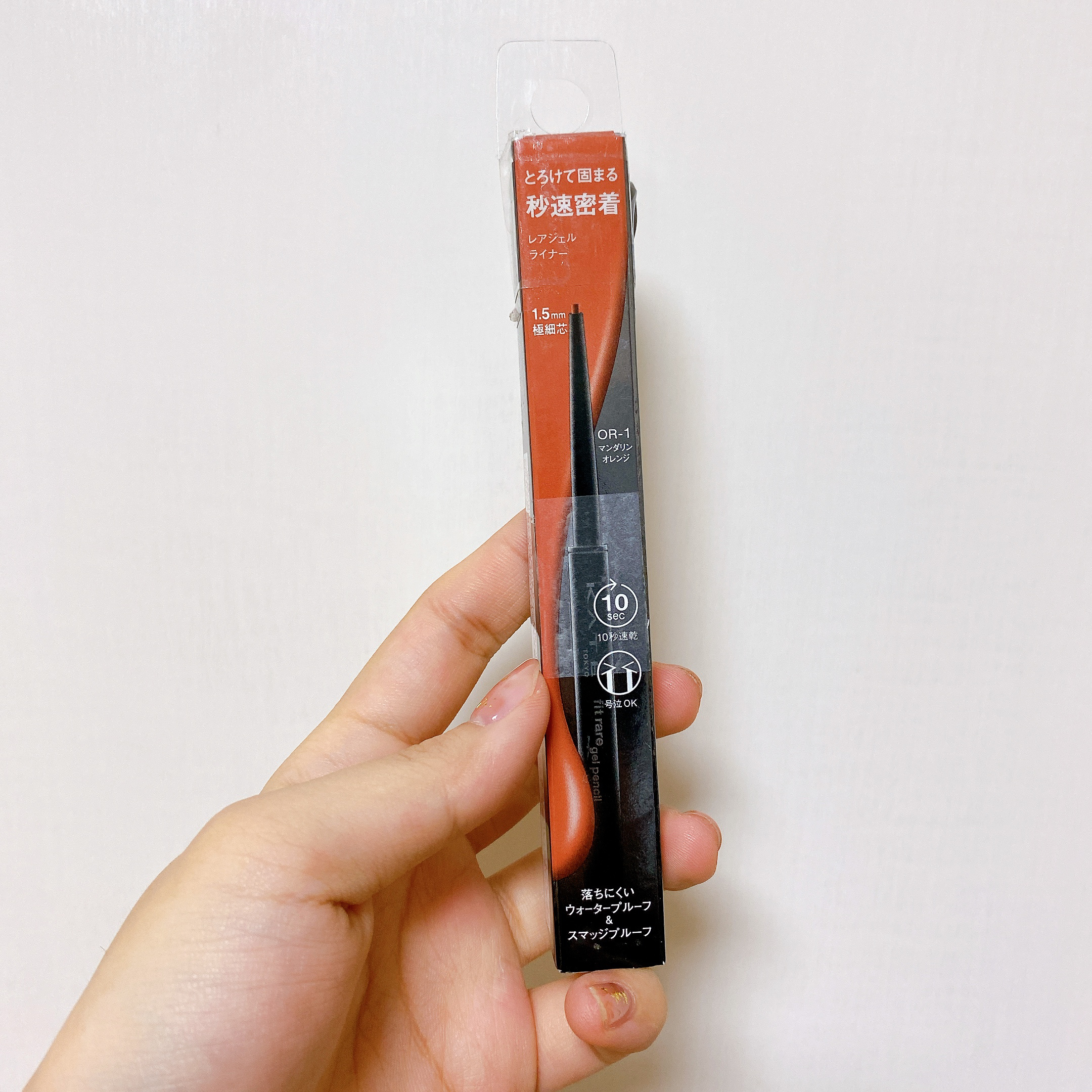 これ本当に落ちにくかった! 手の甲に塗ってから10回こすっても、微動だにしなくてびっくり🫣💕 脂性肌ということもあり、いつもは夕方になるとヨレちゃうんだけど、1日中キレイな仕上がりだった🥳 ジェルペンシルはとろけるような描き心地で、まつげの隙間をスルスルと埋められた! 1.5mmの極細芯で細〜太めライン、跳ね上げラインも簡単に描けるのが◎ 今回モニターしたカラーは、OR-1 マンダリンオレンジ🍊 目元を明るくみせてくれるし、フレッシュな印象になれた気がする🧡 全10色のカラバリも嬉しい🤤