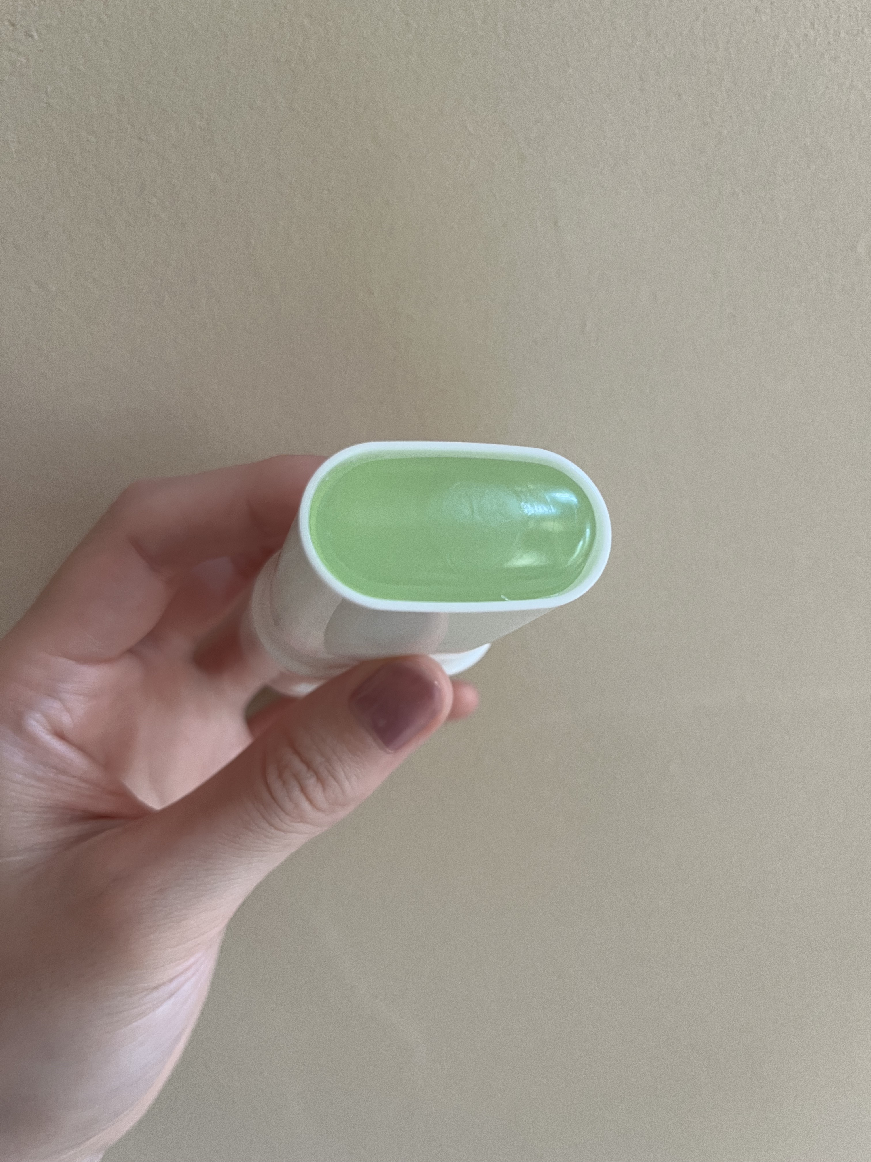 アイスキャンディみたいな可愛らしい見た目🥰 開けるとマスカットの甘い香りがします♪ キレイな緑色をしていますが、肌にのせると色がつかないクリアタイプ💚 なじむとサラッとしてベタつかず、キシキシ感や乾燥も気にならない! 外出先でも手軽に使えて便利です✨ こまめに塗り直しできるよう、毎日持ち歩いています🙆♀️