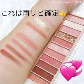 ピンクメインのパレットでとても可愛い色が揃ってます🩷 つけてみると意外としっかり密着してくれました! 肌馴染みもよく発色も良いです🙆 ピンクブラウンもあるので甘めだけど大人っぽさもだせるいろがあるので買って良かったと思います!