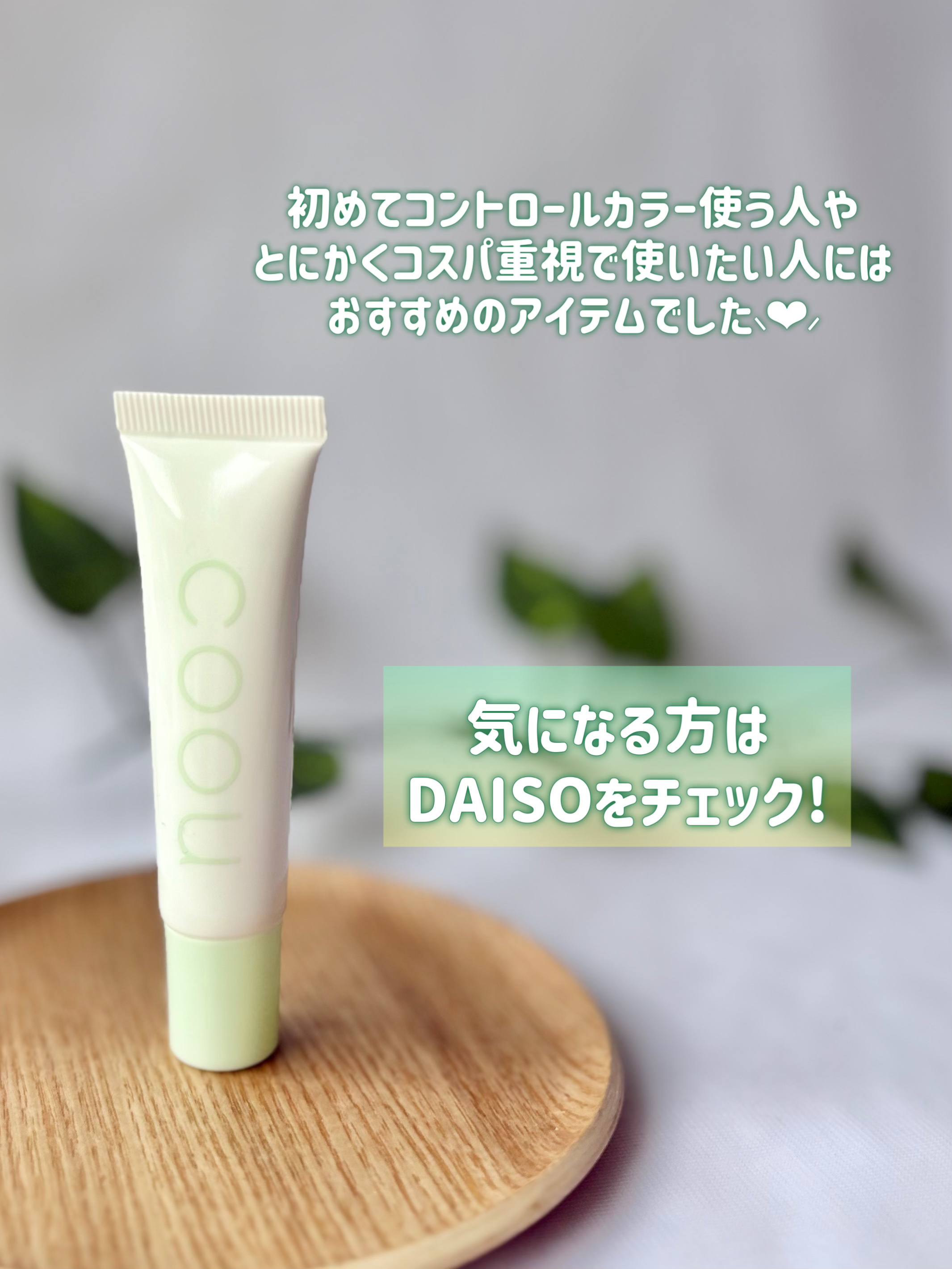 DAISOから出ているcoouコントロールカラー04グリーンを気になって買ってみました👏意外と良かったです!100円でこのクオリティだったら満足(●︎・・●︎)🩷色は4色内容量12ml各100円(税込110円)01ピンクグロウ...........