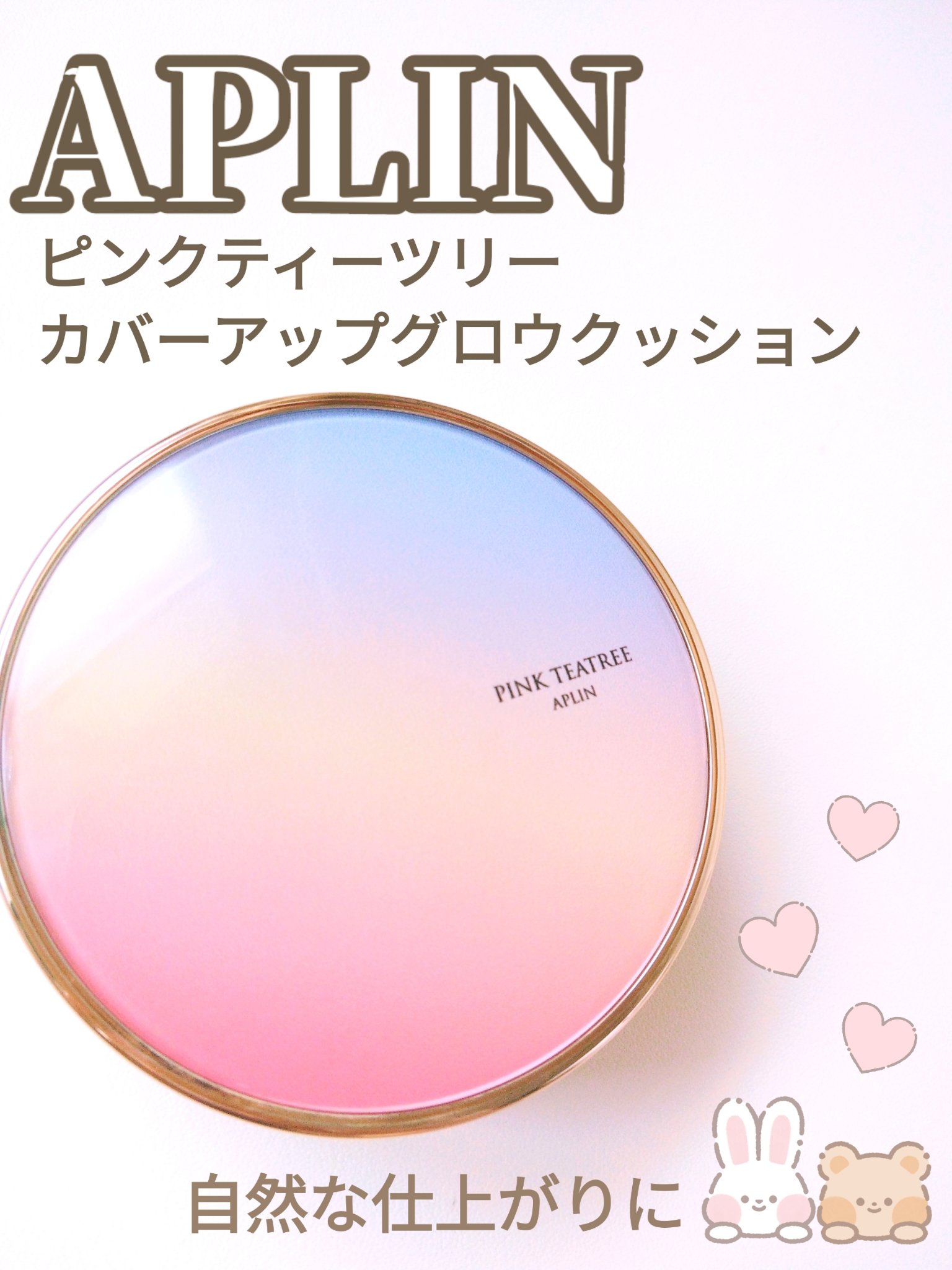 APLIN【ピンクティーツリーカバーアップグロークッション21号】ティーツリーとCICA配合なのでケアしながらニキビも隠せます!のびもよくて少量で足ります◎カバー力もしっかりあって重ねづけするとコンシーラーなしでもいけるくらいです
